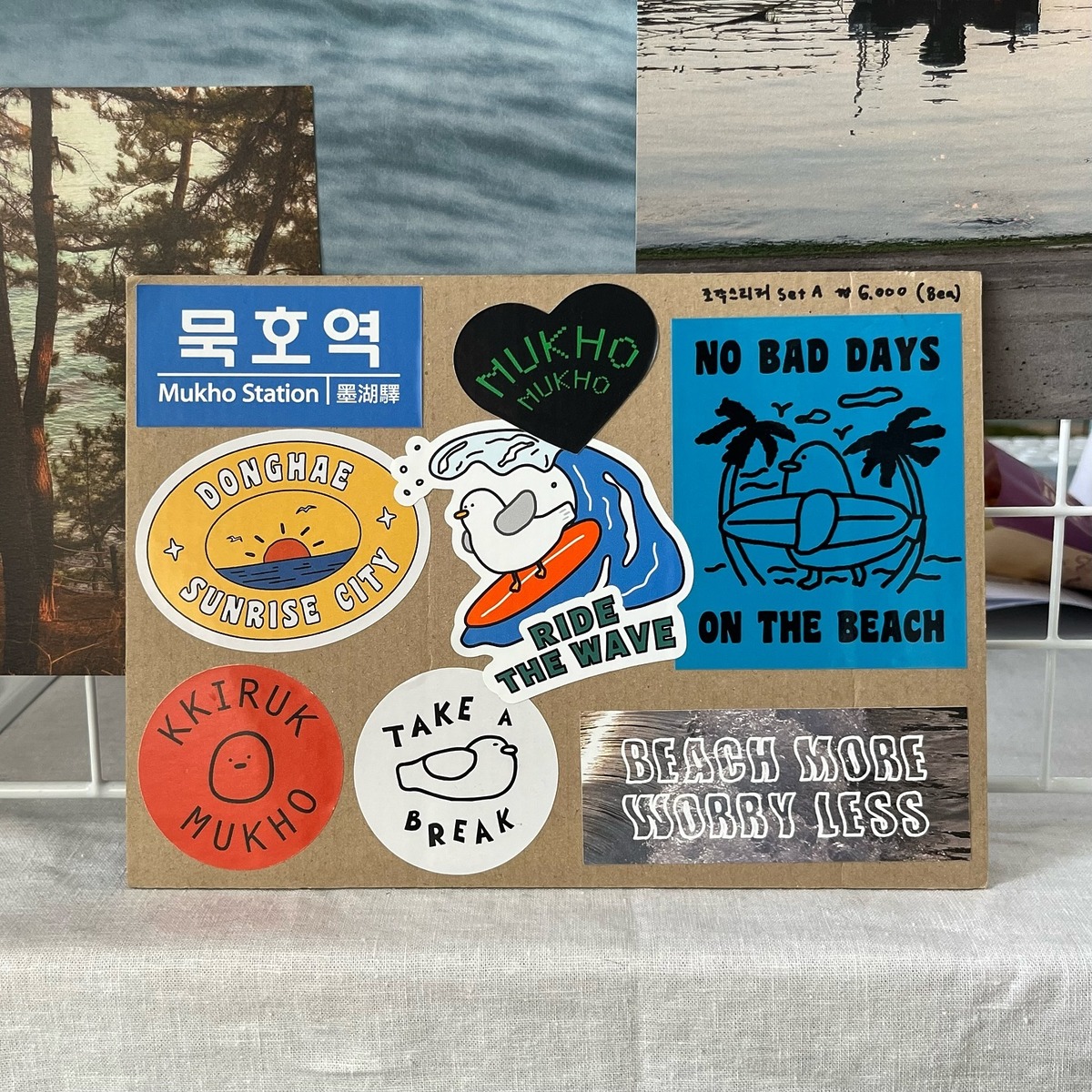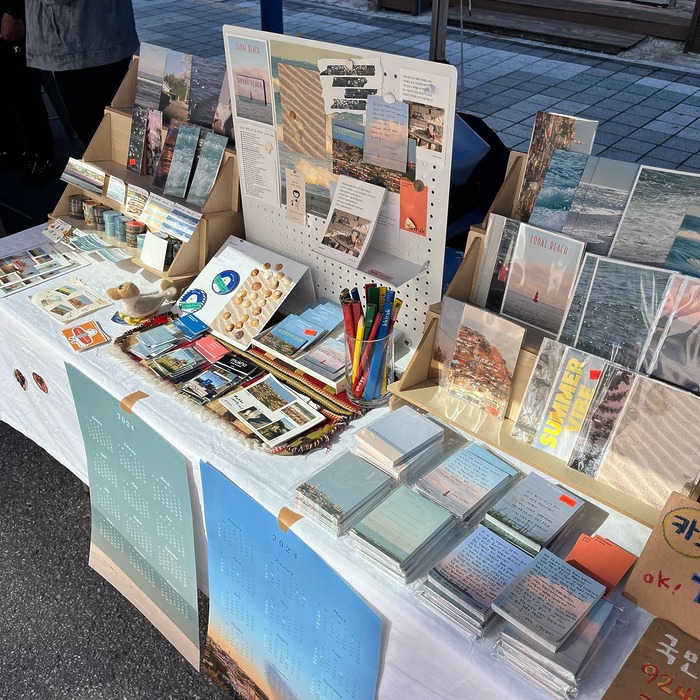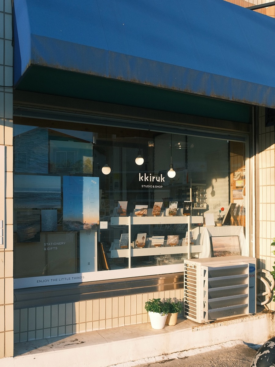 취미가 다꾸인 사람이라면 반드시 들러야 할 곳! 끼룩상점은1평 가량 되는 작은 가게지만 눈길을 끄는 제품이 가득합니다. 동해 바다의 모습을 담은 엽서와 마스킹 테이프, 캘린더 묵호에서 모티브를 얻은 뱃지와 스티커 등 묵호만의 매력을 가득 담은 매력적인 소품들에 그만 ‘텅장’이 될지도 몰라요.