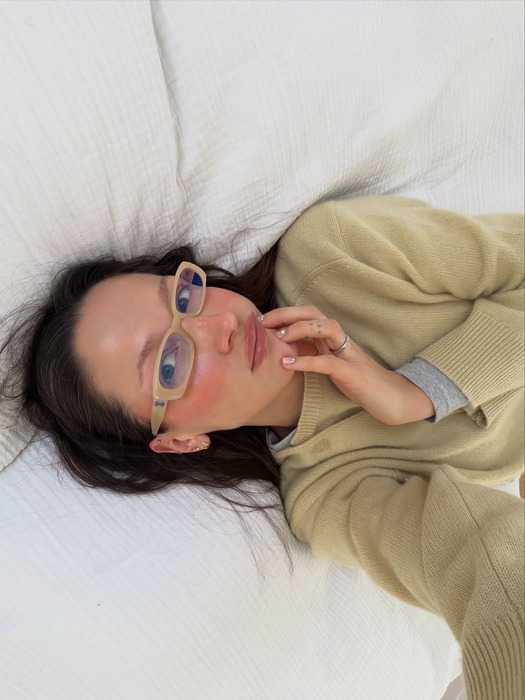 뿔테는 무거운 컬러보다는 투명한 느낌이 나는 컬러를 선택하세요. 지적인 이미지와 모던한 감각을 동시에 잡을 수 있을거에요. 특히 샴페인 크리스탈, 라이트 앰버, 세이지그린 같은 맑은 느낌의 컬러 중 너무 얇지도 두껍지도 않은 적당한 볼륨감의 프레임이 이목구비를 살려줘요.