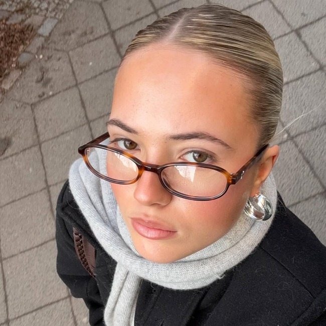 2026년에는 조금 더 가로로 길고 날렵한 오벌 스타일 안경으로 긱시크를 연출해보세요. 딥 브라운, 반투명 그레이 컬러에 클래식한 패턴이 더해진 안경 디자인이 빈티지한 포엣코어 의상과 완벽하게 조화를 이룰거에요. 오벌 스타일은 얼굴이 가로로 넓어 보완하고 싶을 때 효과적인데, 반대로 얼굴이 긴 형은 오벌 스타일 금지.