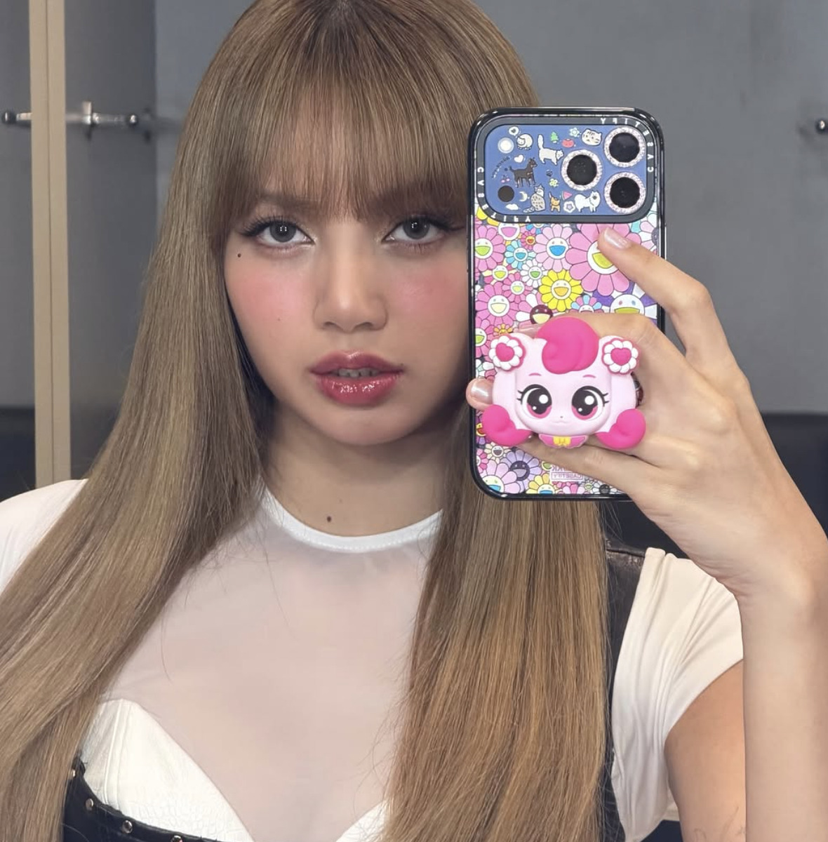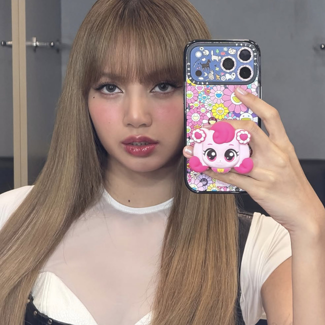 리사의 핸드폰을 보면 최신 폰꾸 트렌드가 한눈에 보입니다. 무라카미 다카시의 그래픽이 프린트된 케이스에 깜찍한 하츄핑 그립톡을 더하고, 아기자기한 스티커로 마무리해 화려한 폰꾸를 완성했는데요. 무대 위의 카리스마 넘치는 모습과는 상반된 취향이 오히려 더 매력적으로 느껴집니다.