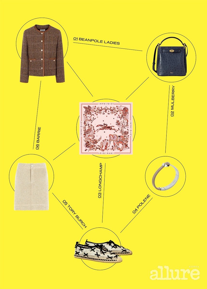 3 실크 스카프는 58만원 롱샴(Longchamp).