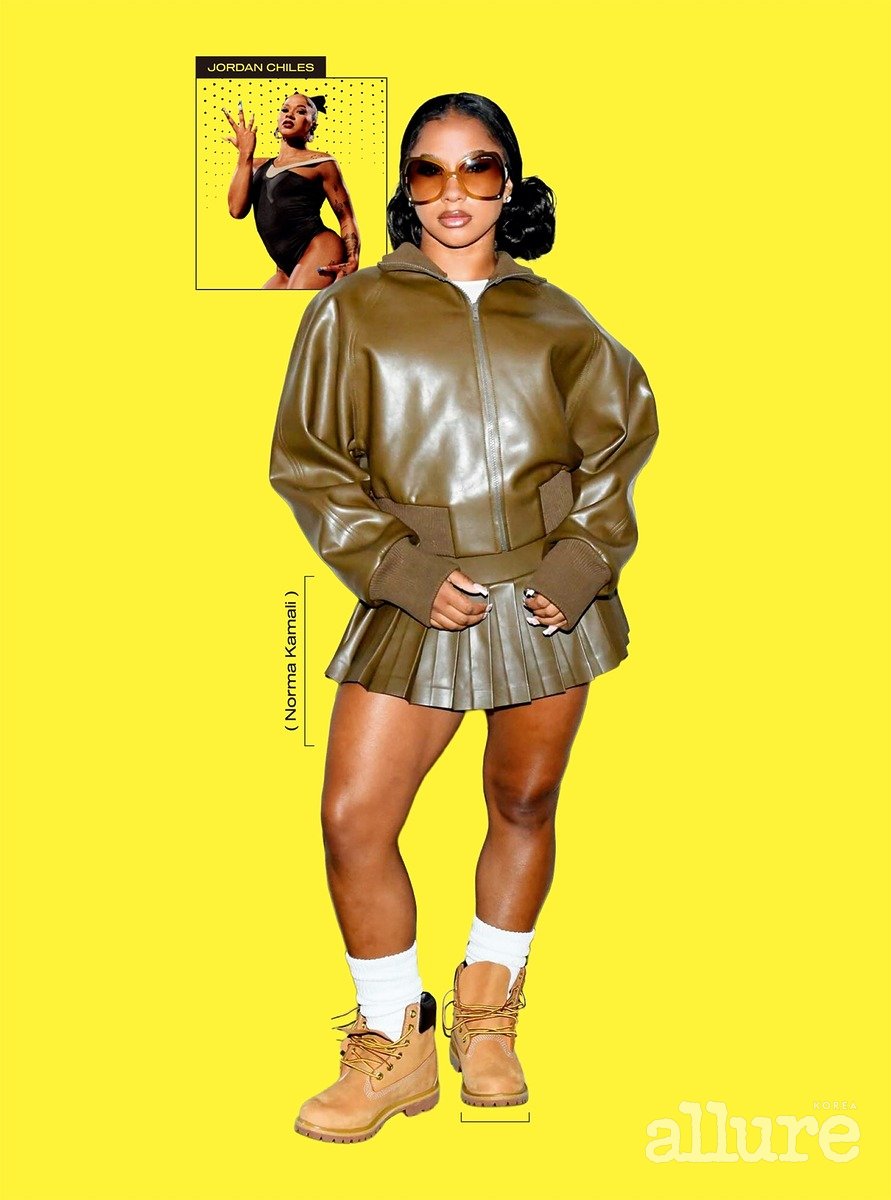 오늘날의 ‘보디 포지티브’는 단순히 몸을 드러내는 차원을 넘어, 우리의 신체가 무엇을 해낼 수 있는지에 주목한다. 그 변화를 가장 상징적으로 보여주는 인물이 바로 조던 차일스(Jordan Chiles)다. 2001년생 미국 올림픽 기계체조 메달리스트인 그는 트레이드마크인 화려한 롱 네일을 뽐내며, 스포츠와 패션의 경계를 과감히 허문다. 중력과 균형, 폭발적인 힘을 계산하며 단련된 신체는 경기장 밖에서도 여전히 독보적인 존재감을 발산한다. 차일스가 즐겨 입는 선명한 비비드 컬러 역시 시선을 끌기 위한 장치가 아니다. 내면의 자신감과 에너지가 자연스럽게 겉으로 표출된 결과물이다. 가만히 서 있을 때보다 움직임 속에서 더 큰 설득력을 얻는 그의 스타일은 ‘모든 몸을 위한 핏’을 알리는 스킴스 캠페인에서 분명히 드러났고, <댄싱 위드 더 스타즈> 무대에서는 응축된 힘을 담은 스타일로 확장되며 매회 관중을 사로잡았다. 훈련과 성취로 증명된 차일스의 몸과 스타일은, 그를 지금 가장 동시대적인 아이콘으로 자리매김하게 한다.