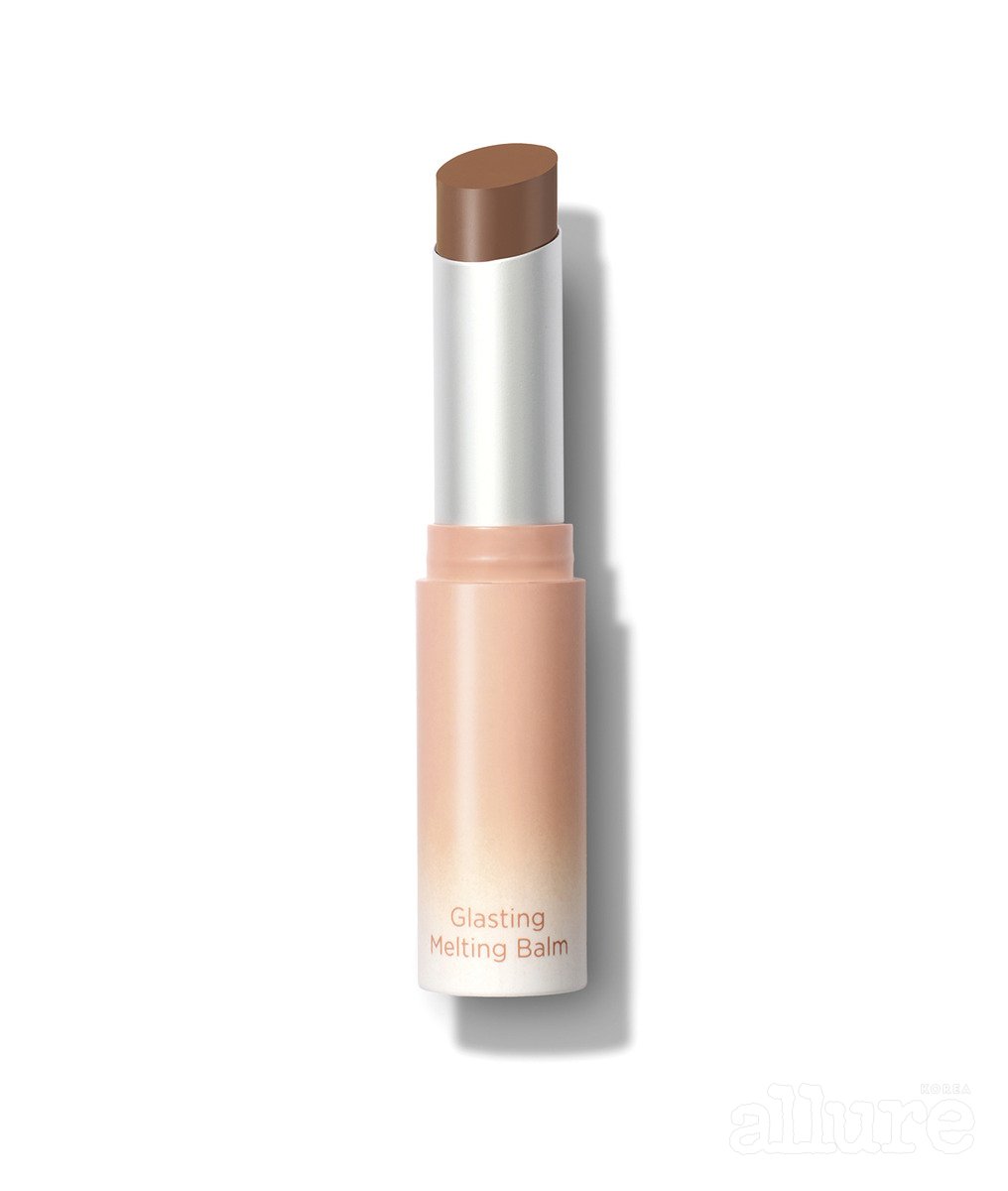 롬앤의 글래스팅 멜팅 밤 더스티온더누드 #10 누 베이지 입술 위에 쫀쫀하게 녹아들어 투명하게 빛나는 ‘물먹립’을 연출해준다. 3.5g 1만3천원.