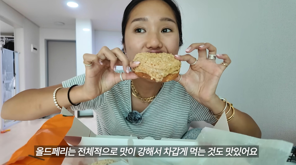팀홀튼, 아임 도넛? 등 여러 도넛 브랜드를 브이로그에 담았을 정도로 도넛을 즐겨 먹는 미미가 꼽은 그녀의 최애 도넛 메뉴 중 하나는 올드페리도넛의 피넛버터입니다. 피스타치오, 우유 크림과 함께 올드페리도넛의 인기 메뉴 중 하나죠. 이곳의 도넛을 좀 더 맛있게 먹는 미미만의 꿀팁은 바로 차갑게 해서 먹는 ‘얼먹’! 맛이 진한 편이라 이렇게 해서 먹어도 심심하지 않고 색다른 식감과 맛을 즐길 수 있어요.