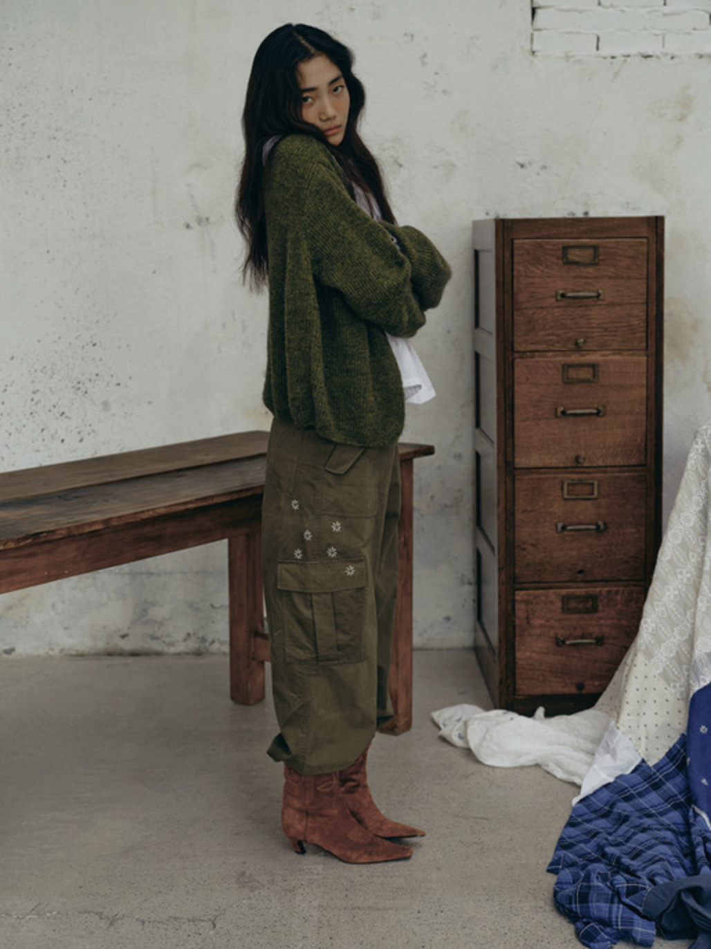 michikolondonBASIC WOOL KNIT CARDIGAN KHAKI OLIVE