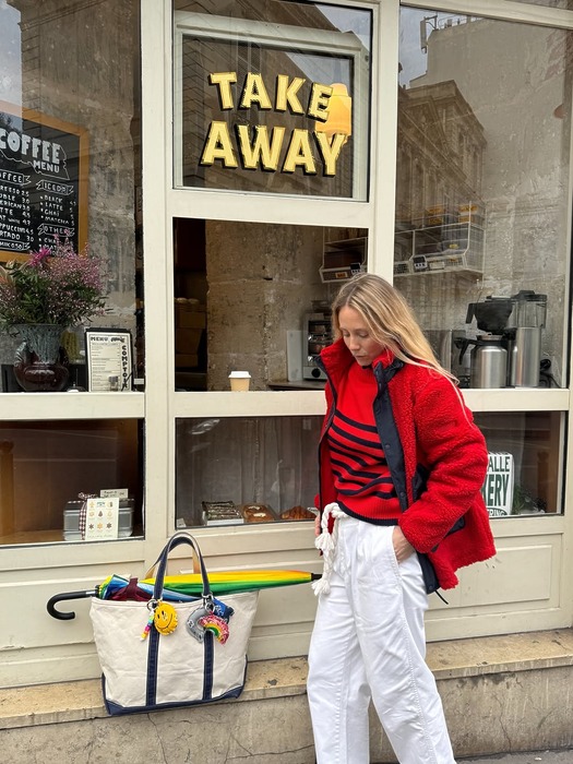 레드 컬러 옷을 고를 때 몸에 딱 달라붙거나 스포티하게 보이는 두꺼운 지퍼, 스트링, 벨크로 같은 디테일이 많을수록 영포티 느낌이 강해 보이죠. 이것만 기억하세요. 몸의 라인이 드러나지 않게 넉넉한 품의 니트, 셔츠, 점퍼를 고르세요. 또 스포티한 지퍼 대신 골드 컬러 버튼, 진주 버튼 장식이 레드의 강렬함에 클래식한 무드를 더해준답니다.