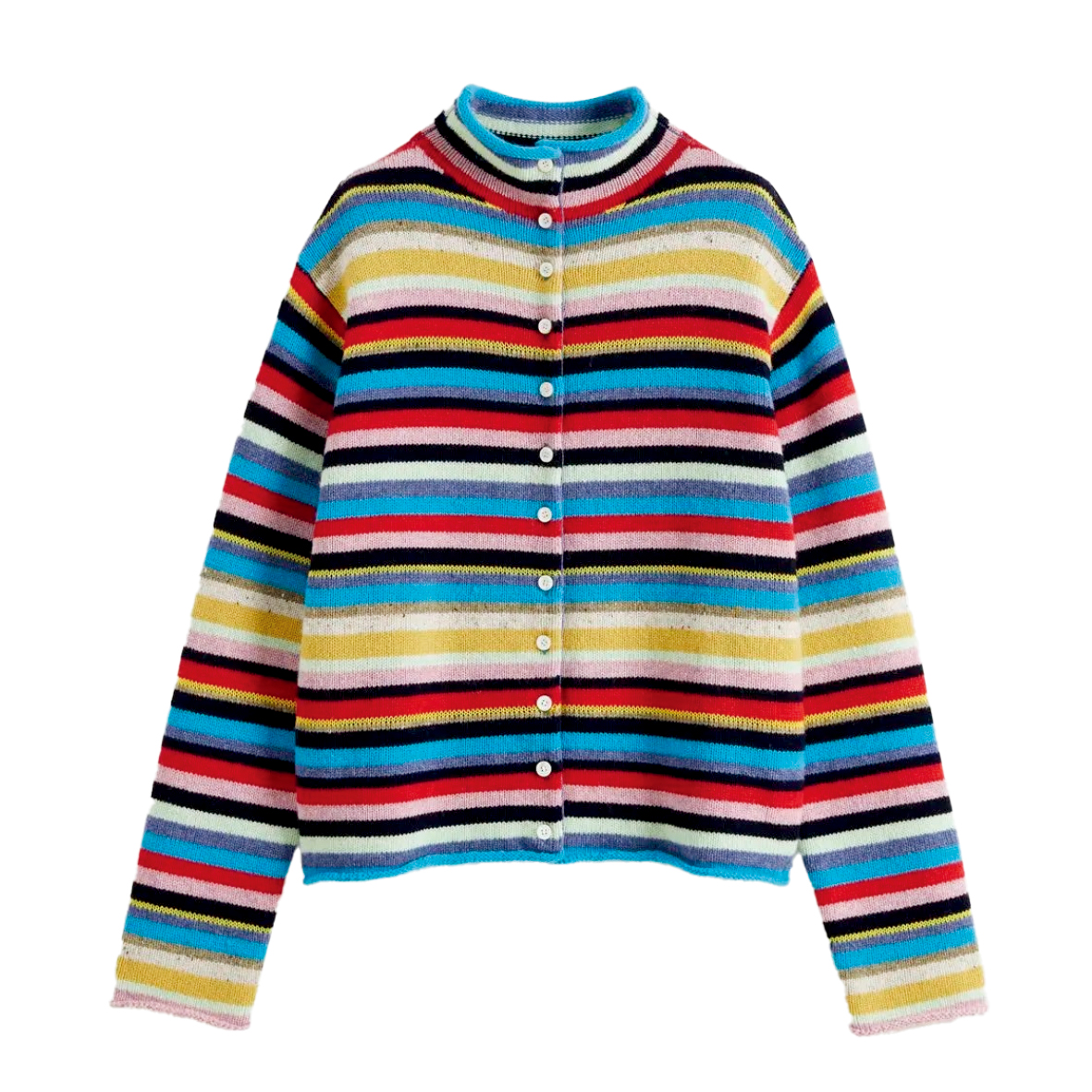 울과 코튼 소재를 혼방한 스트라이프 패턴 카디건은 60만원대 쇼트 센텐스(Short Sentence).
