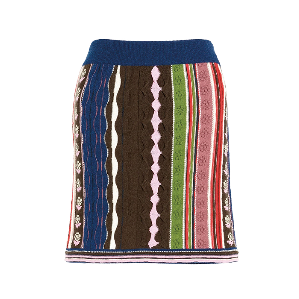 입체적인 스티치와 자카드 패턴을 결합한 캐시미어 스커트는 1백40만원대 배리(Barrie).