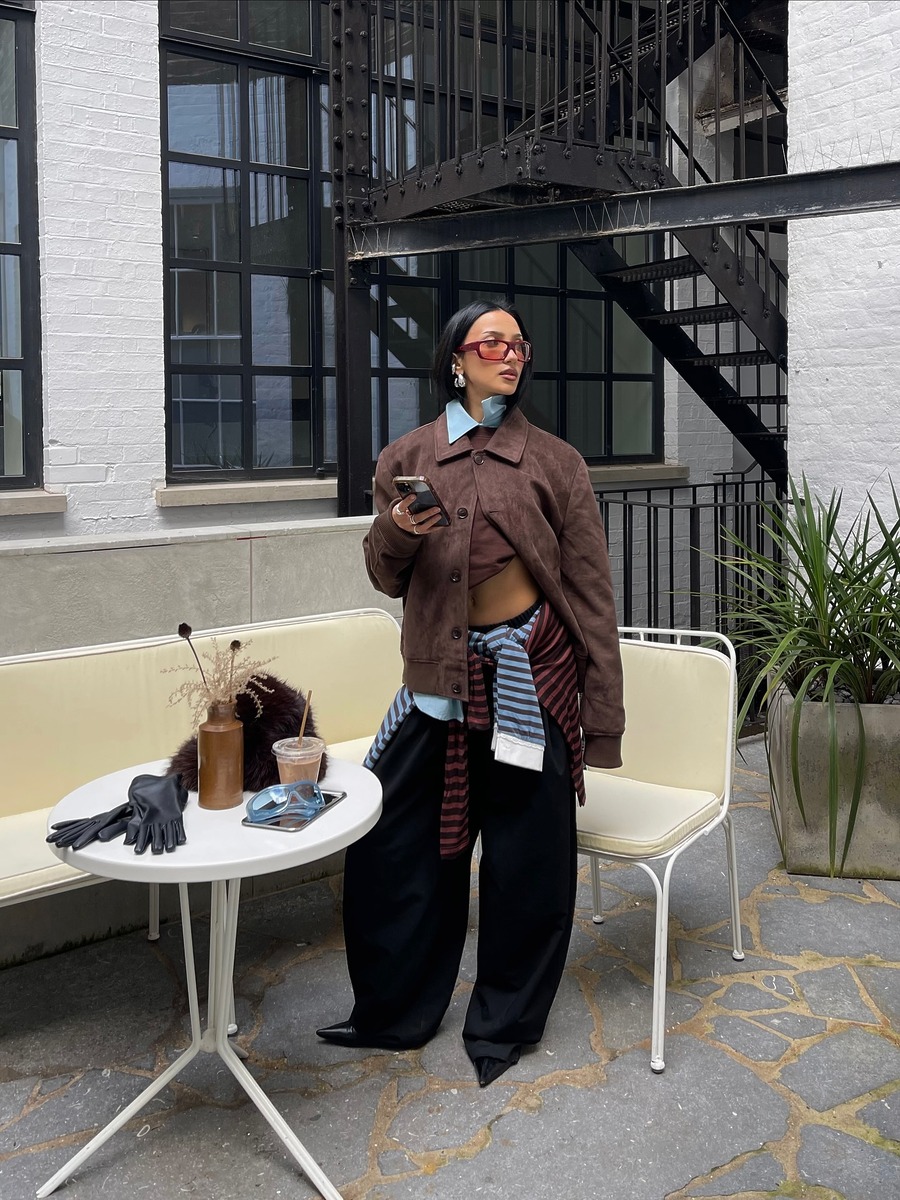 패턴 아이템을 더해 보는 것도 좋은 선택이에요. 볼륨감 있는 블랙 슬랙스 위로 스트라이프 톱을 묶어 주면 세련된 주말 나들이 룩이 완성됩니다. 볼드한 이어링과 틴티드 선글라스까지 더해주면 트렌디한 무드를 더할 수 있고요. 슬랙스의 포멀한 무드에 스트라이프의 경쾌함이 더해져 균형잡힌 스타일링을 연출할 수 있을 거예요.
