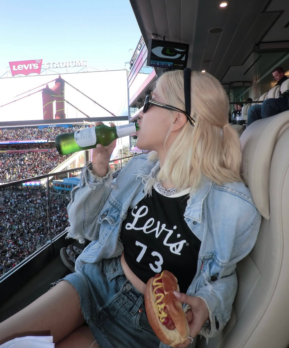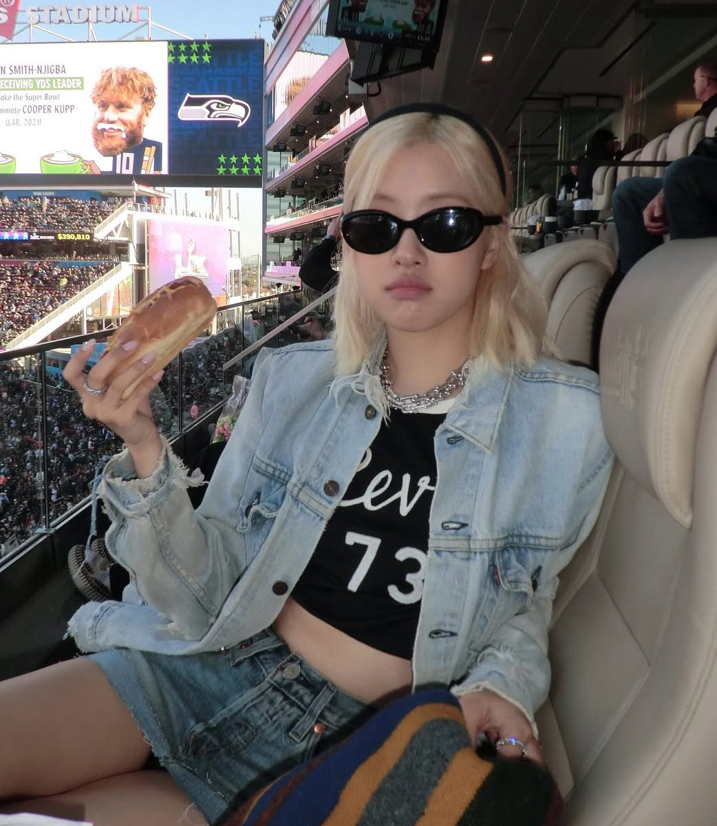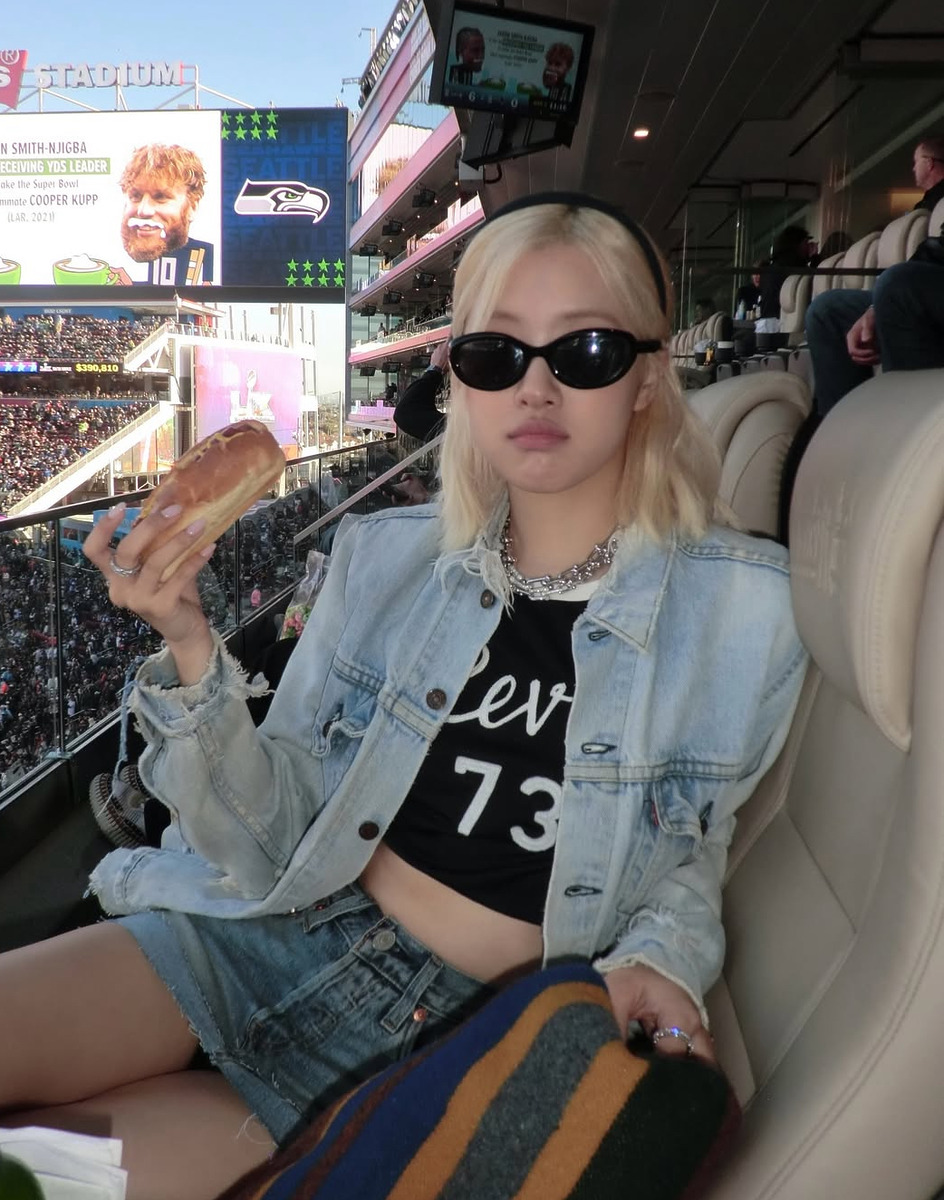 제 60회 슈퍼볼이 열린 산타클래라 리바이스 스타디움. 배드 버니의 하프타임 공연만큼이나 셀럽들의 데님 패션이 화제가 되었는데요. 그 중에서도 로제의 청청룩은 폭풍 검색을 일으키며 데님 원조 리바이스를 다시 보게 만들었습니다. 블랙 크롭 티셔츠에 미니스커트 겹쳐 입기 신공을 펼친 로제. 오버사이즈 트러커 재킷을 걸치고 한 손엔 핫도그, 한 손엔 맥주를 들고 경기를 즐기는 모습이 쿨해 보였는데요. 겹쳐서 연출한 티파니 하드웨어 목걸이가 스타일링의 한 수였죠.