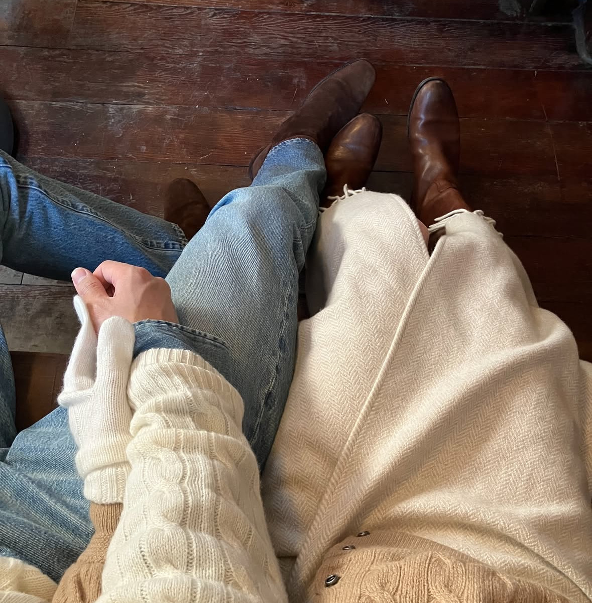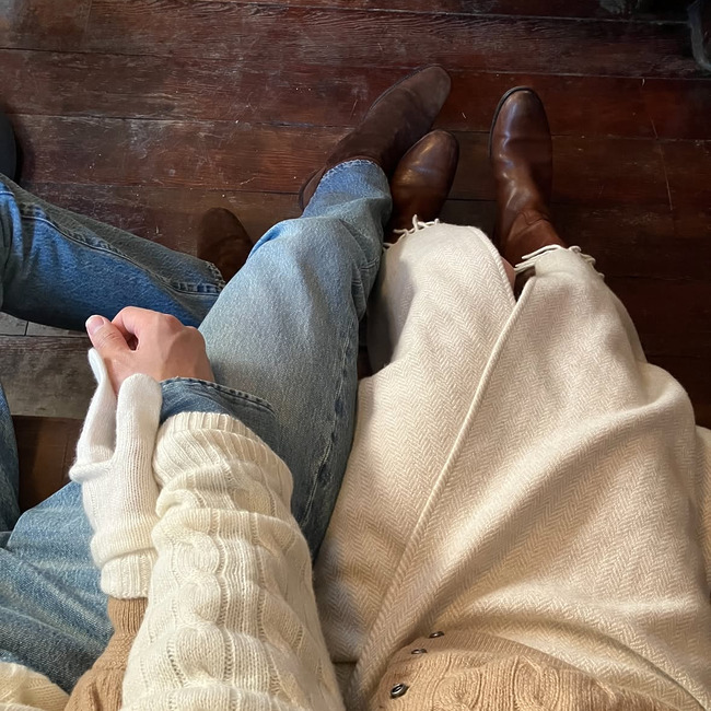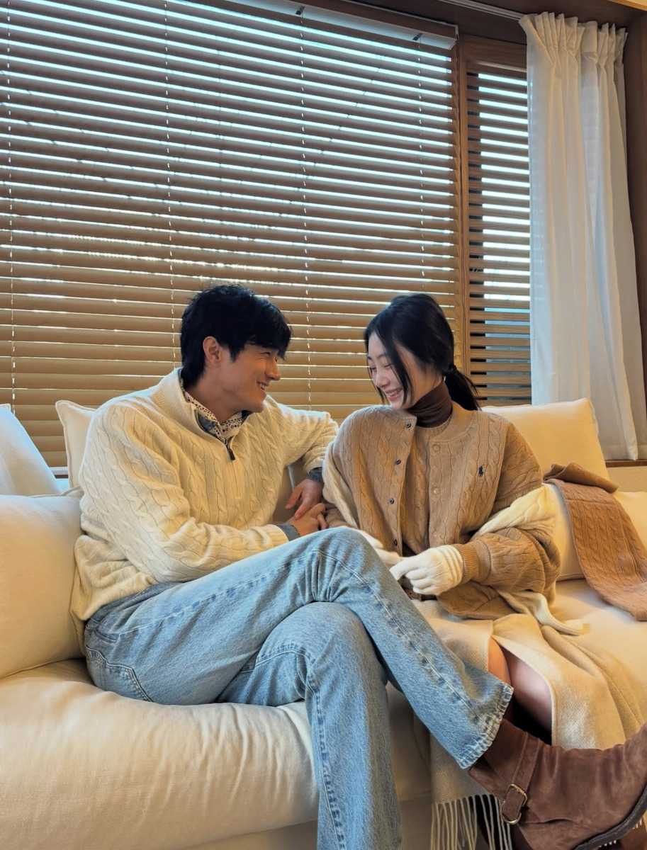 인플루언서 영서&현웅 커플도 톤을 맞춘 사랑스러운 커플룩을 선보였답니다. 아이보리 컬러의 톱과 팬츠, 딥 그린 컬러의 패딩을 입은 현웅과 그린&민트로 맞춰 입고 무채색의 그레이 코트로 마무리한 영서의 스타일링은 완벽한 시밀러 룩 아닌가요? 컬러와 소재만 맞추면 서로 다른 스타일링 아이템을 매치해도 커플룩처럼 보일 수 있어요. 아이보리&베이지 컬러에 같은 짜임의 니트를 맞춰 입은 커플 룩에서 팁을 얻어보세요!