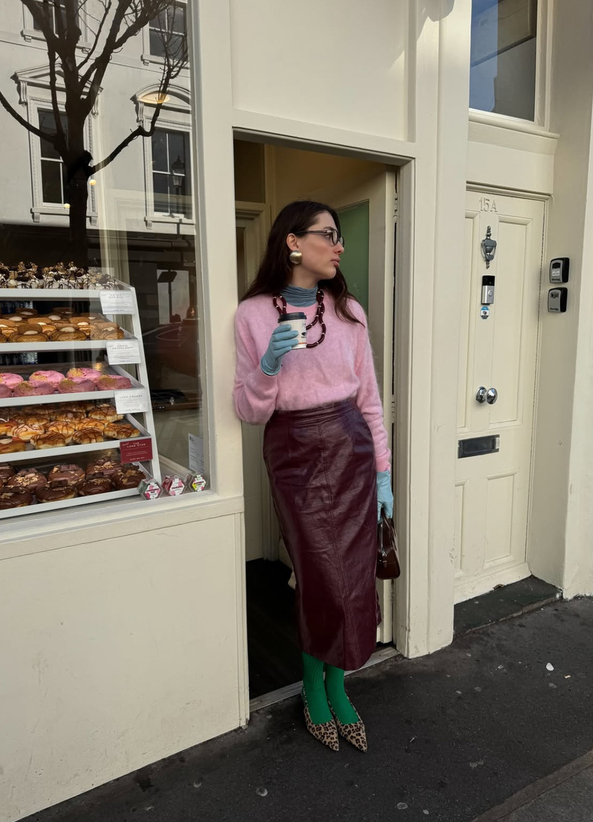 조금 더 과감한 핑크 룩에 도전하고 싶다면 스커트에 컬러 스타킹을 더해보세요. 전체적인 룩을 한층 화사하게 살려주면서 스타일링에 확실한 포인트가 되어준답니다.