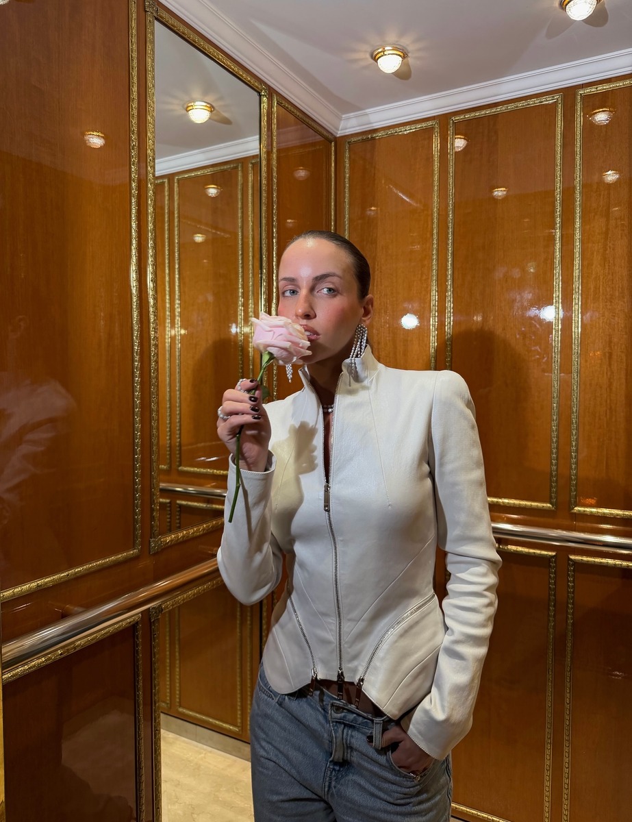코르셋 디테일이 더해진 재킷 역시 눈여겨볼 만한 선택지입니다. 허리선을 강조하는 구조적인 패턴 덕분에 재킷 하나만으로도 실루엣이 완성되죠. 캐주얼한 데님 팬츠와 매치하면 균형 잡힌 데일리 룩이 되고, 볼드한 이어링이나 힐을 더하면 파티 룩이 완성되죠. 균형과 비율만 잘 맞추면 코르셋도 얼마든지 데일리로 활용할 수 있을 거예요.