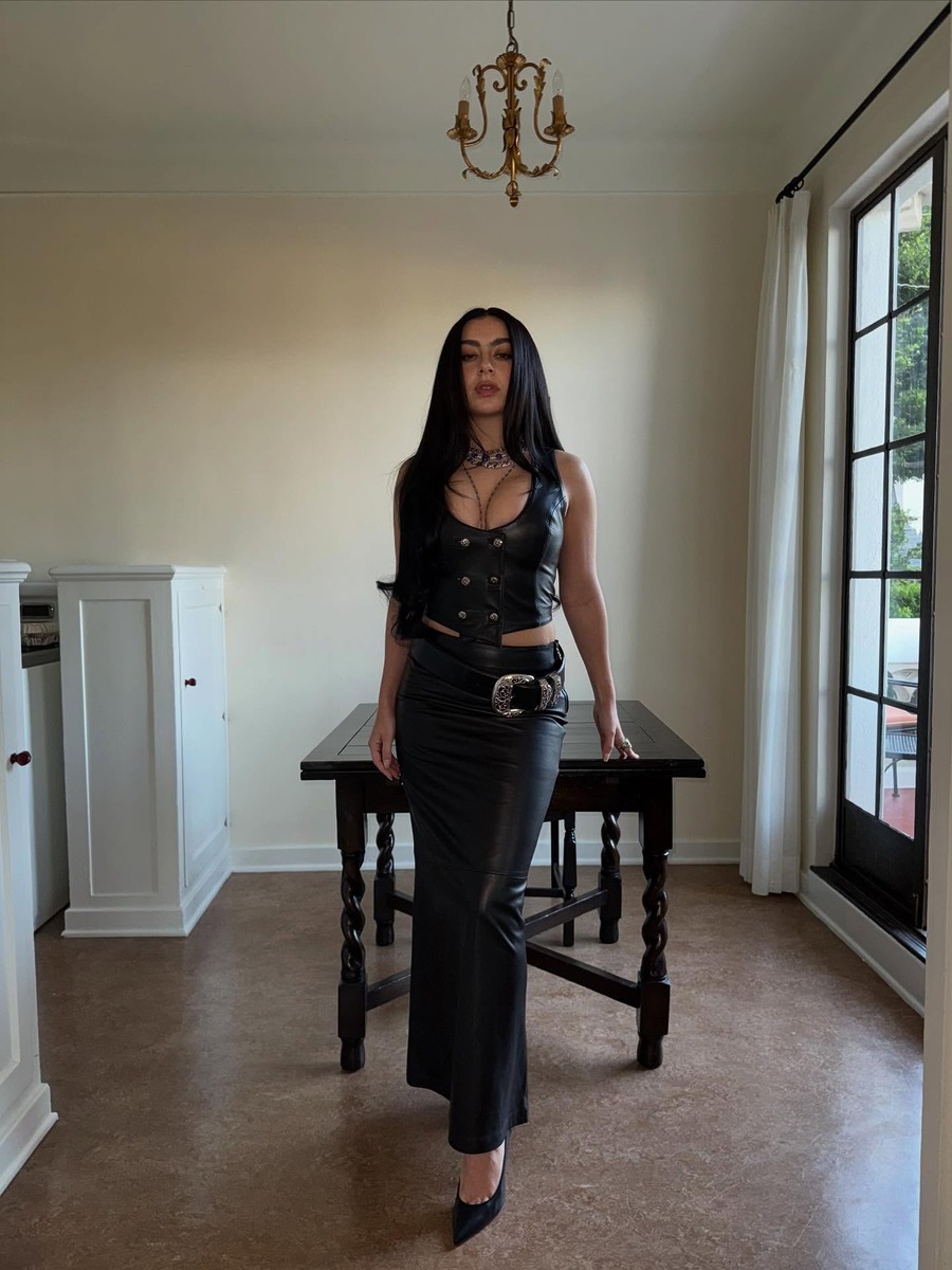 반면 찰리 XCX는 코르셋 톱을 보다 과감하게 활용합니다. 레더 브라와 쇼츠 위에 은은한 블루 코르셋을 입어 펑키하면서도 관능적인 무드를 연출하거나, 레더 코르셋 톱으로 고스 무드를 완성하죠. 로맨틱한 아이템과 와일드한 소재처럼 상반된 요소를 과감하게 섞어 더욱 매력적인 스타일링이 연출됩니다.