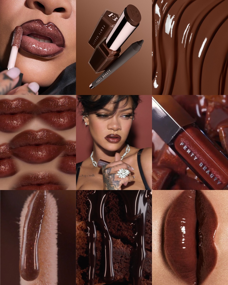 누디한 립이 떠오르는 동시에 진한 매력의 ‘초콜릿 립‘ 역시 SNS를 물들이고 있습니다. 리한나의 펜티 뷰티는 마치 초콜릿 퐁듀를 연상케 하는 딥한 컬러와 텍스처의 립 제품을 선보였으며 스포트막스의 26 봄/여름 캠페인에 등장한 모델은 짙은 버건디와 브라운이 믹싱된 듯한, 베리류를 가득 머금은 초콜릿 빛 입술로 등장했어요. ‘두쫀쿠’ 유행과 맞물려 인터넷 상에서는 ‘두쫀쿠 립’이라 불리기도 했죠.