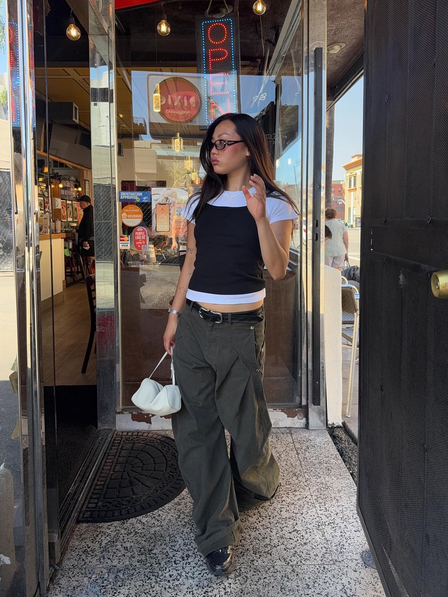 슬리브리스 티셔츠를 이너로만 활용해 왔다면 이제 생각의 전환이 필요할 때. 코튼 소재의 슬리브 리스 티셔츠를 반팔 티셔츠 위로 겹쳐 입어 보세요. 두 아이템의 순서를 바꾸기만 해도 전체적인 룩에 리듬감이 생겨 무드가 확 바뀌니까요. 이때, 이너로 입는 반팔 티셔츠는 몸에 딱 붙는 디자인의 크롭 티셔츠를 선택해야 실루엣이 정돈되어 보입니다.