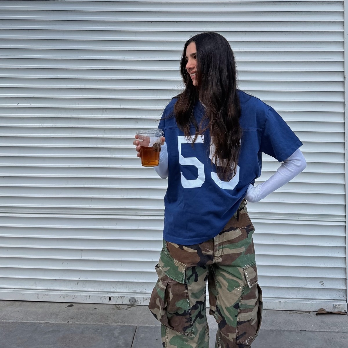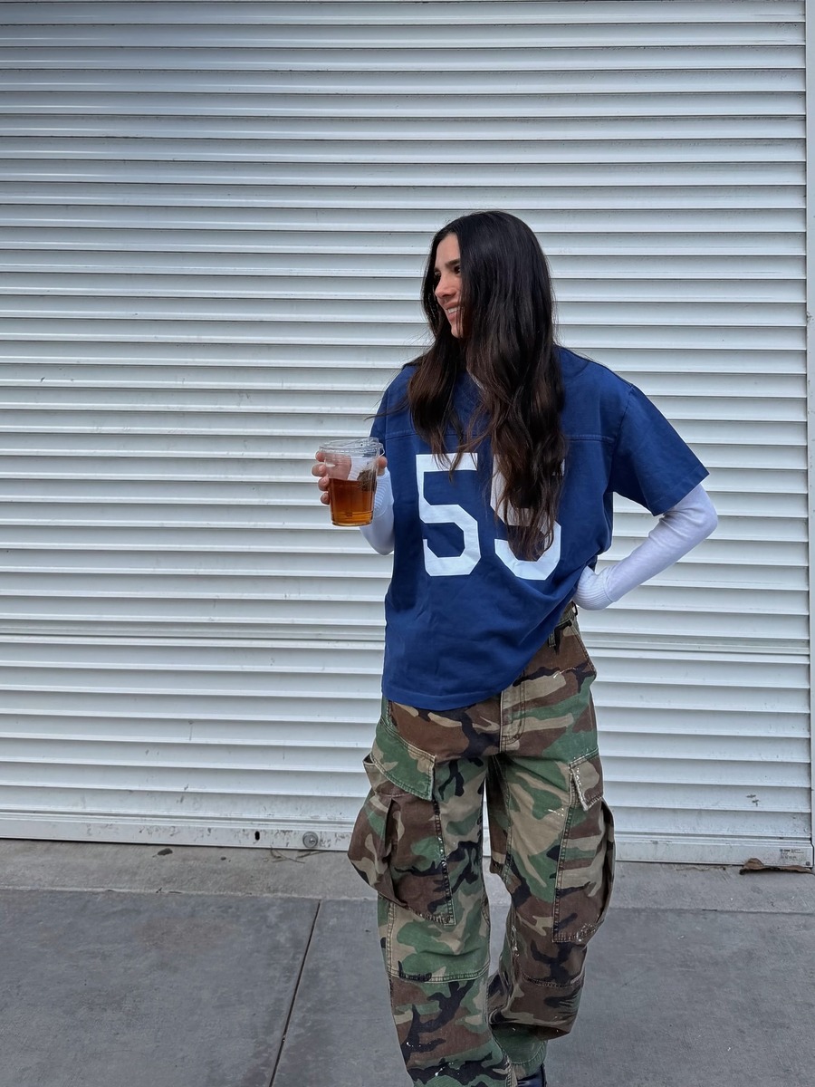 티셔츠라고 입어서 스타일링해야 할 필요는 없습니다. 몇 년 전 유행했던 럭비 티셔츠나 스트라이프 티셔츠를 허리에 둘러 스타일링하는 것도 좋은 방법이죠. 루즈한 트랙팬츠나 카고 팬츠 위에 티셔츠를 무심하게 걸쳐주면 밋밋했던 룩에도 경쾌함이 살아나죠.