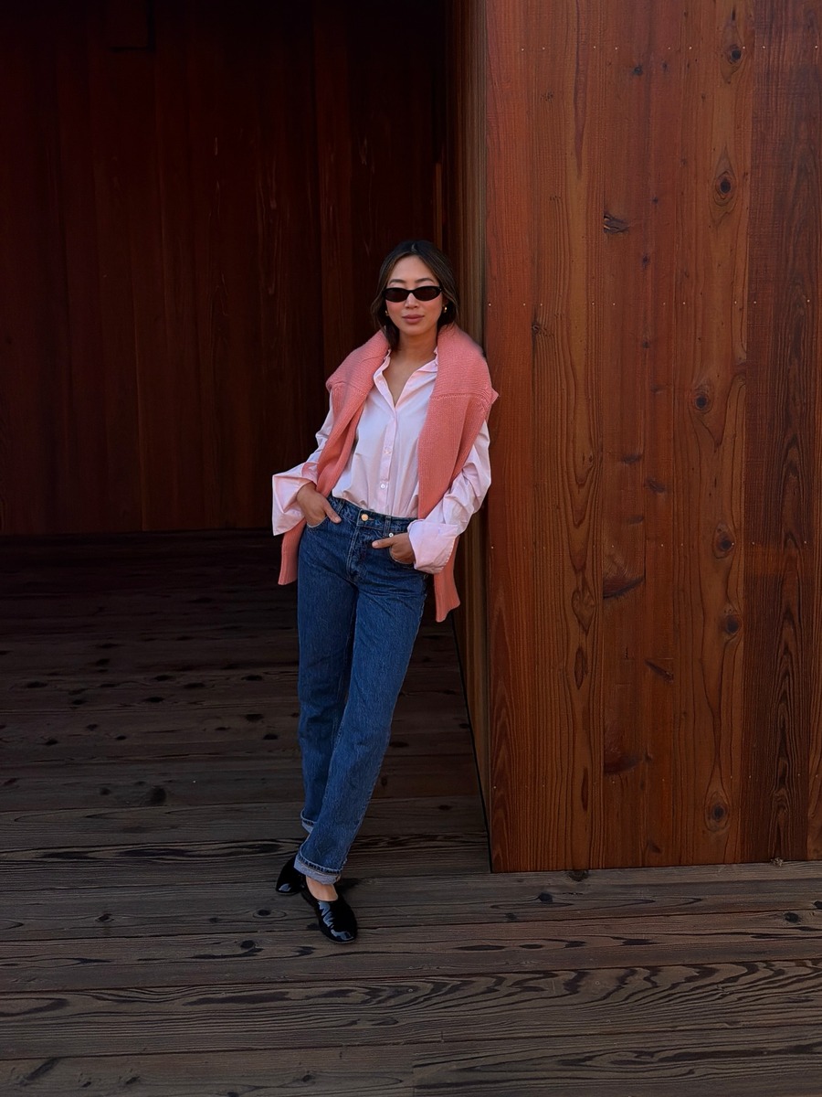 핑크 셔츠에 스트레이트 핏 데님을 매치하고 블랙 플랫을 더해 보세요. 과하지 않으면서도 세련된 무드가 살아날 거예요. 혹은 파자마 팬츠와 니트처럼 편안한 조합에 베이지 플랫을 신는 것도 좋은 방법입니다. 발등을 감싸는 담백한 디자인이 룩 전체에 안정감을 더하고, 발이 얇고 길어 보이는 효과까지 기대할 수 있거든요.