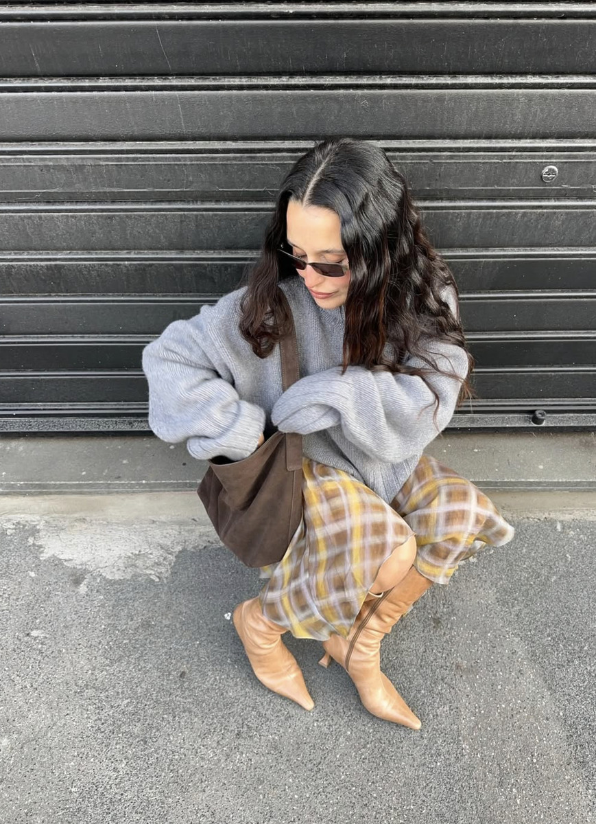 봄 날씨처럼 풀린 날엔 하늘하늘 날리는 가벼운 린넨이나 시폰 소재의 체크 스커트를 선택해 보세요. 무릎까지 올라오는 롱부츠나 웨스턴 부츠와 매치하면 핀터레스트 속 느낌 좋은 데일리 룩을 완성할 수 있죠. 여기에 그레이 컬러의 폭닥한 오버사이즈 니트가 후드 티셔츠를 매치하면 캐주얼하면서도 더 여리한 느낌을 연출할 수 있어요.