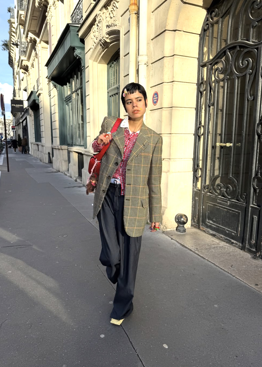 체크 패턴의 재킷을 입을 땐 의도적으로 다른 패턴을 섞어보세요. 딥 그레이 체크의 수트 재킷에 화이트 티셔츠, 레오파드 팬츠를 믹스한 스타일을 참고해 보세요. 두 가지 패턴을 입었지만 전혀 과하지 않게 연출했죠. 옐로 톤의 잔 체크가 돋보이는 재킷에 스트라이프 패턴의 슬랙스를 매치한 스타일도 눈여겨보세요. 여기서 참고할 점은, 두 패턴이 충돌하지 않게 한 가지는 차분한 컬러로 눌러주는 것이 포인트죠.