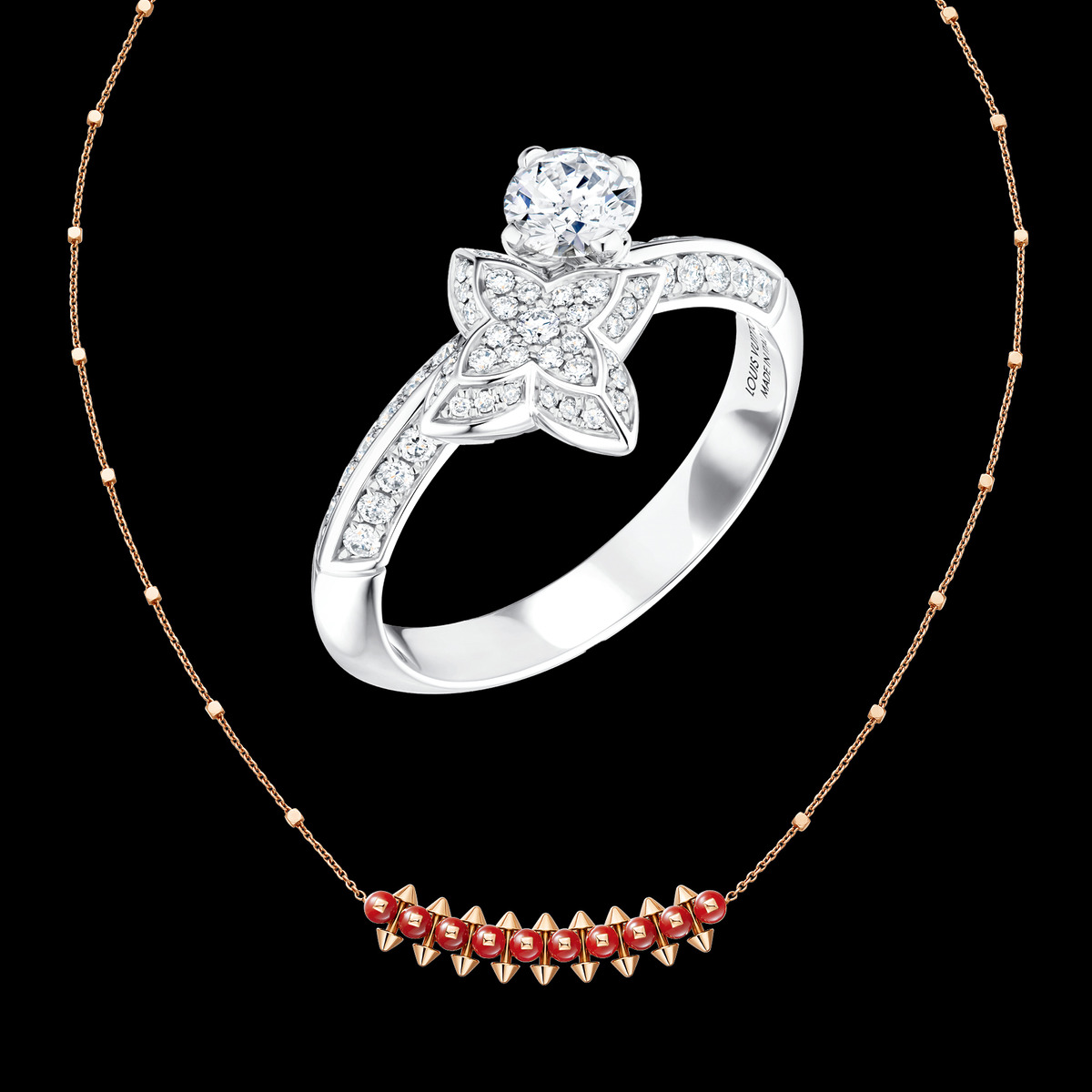 아이코닉한 모노그램 캔버스를 재해석한 ‘LV 모노그램 스타 컷’은 53개의 파셋 구조로 설계돼 다이아몬드가 지닌 빛의 잠재력을 극대화한다. 이 대담한 컷은 3가지 독창적인 ‘LV 다이아몬드’ 컬렉션으로 구현되며, 아우라 블록체인 컨소시엄의 디지털 인증서를 통해 투명성과 추적 가능성까지 보장한다.