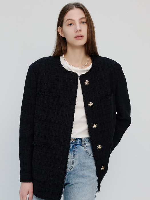 카라 트위드 재킷
