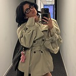스웨이드 소재 재킷은 성공한 보헤미안 같은 인상을 주죠. 배럴진에 짙은 갈색 스웨이드 재킷에 프린지 장식의 숄더백과 파이톤 부츠를 매치한 앤디만 봐도 그렇죠. 푸른빛이 도는 스카프가 우아한 분위기를 더하네요.