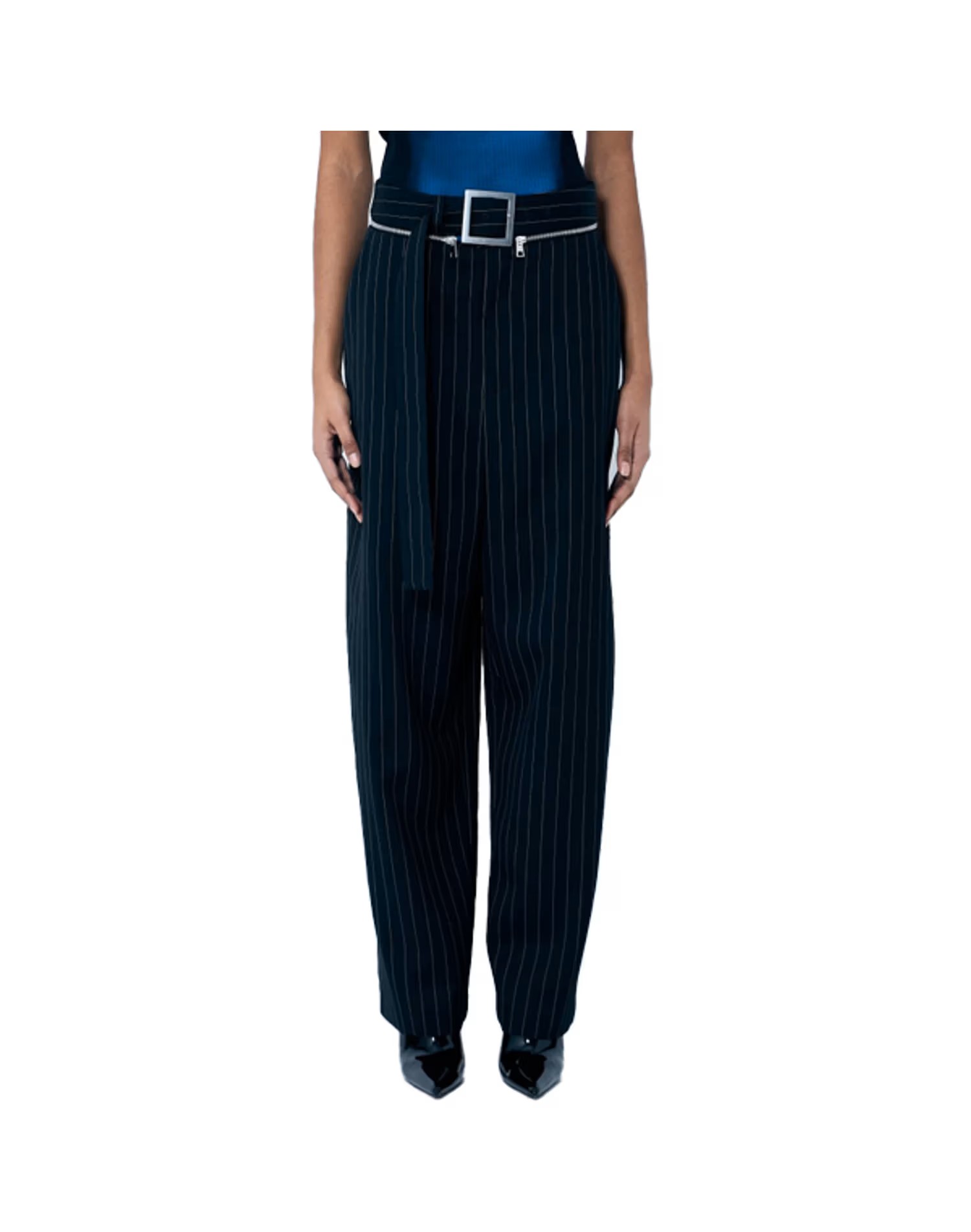 앤 해서웨이가 SNS에 공개한 ‘앤드리아’의 퍼스트 룩, 장 폴 고티에의 핀스트라이프 베스트와 팬츠였죠. 몸에 꼭 맞는 베스트와 부드러운 곡선을 그리는 벌룬 핏 팬츠, 부티의 조합이 쿨하면서도 섹시한데요. 진주 목걸이와 볼드한 골드 네크리스를 레이어드한 액세서리 활용도 눈에 띕니다.