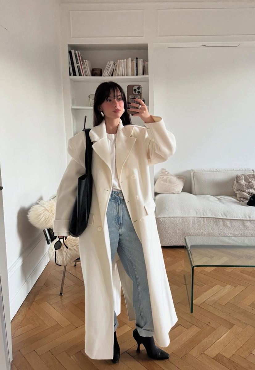 화이트 진도 예외는 없죠. 와이드 실루엣으로 밑단이 끌릴 듯 긴 화이트 데님이 있다면 지금 당장 꺼내보세요. 밑단을 5cm 정도 한 단 접어 발등이 낮은 로퍼와 함께 매치해 보세요. 로브 스타일의 롱 코트나 트렌치코트를 걸치는 것도 잊지 말고요!