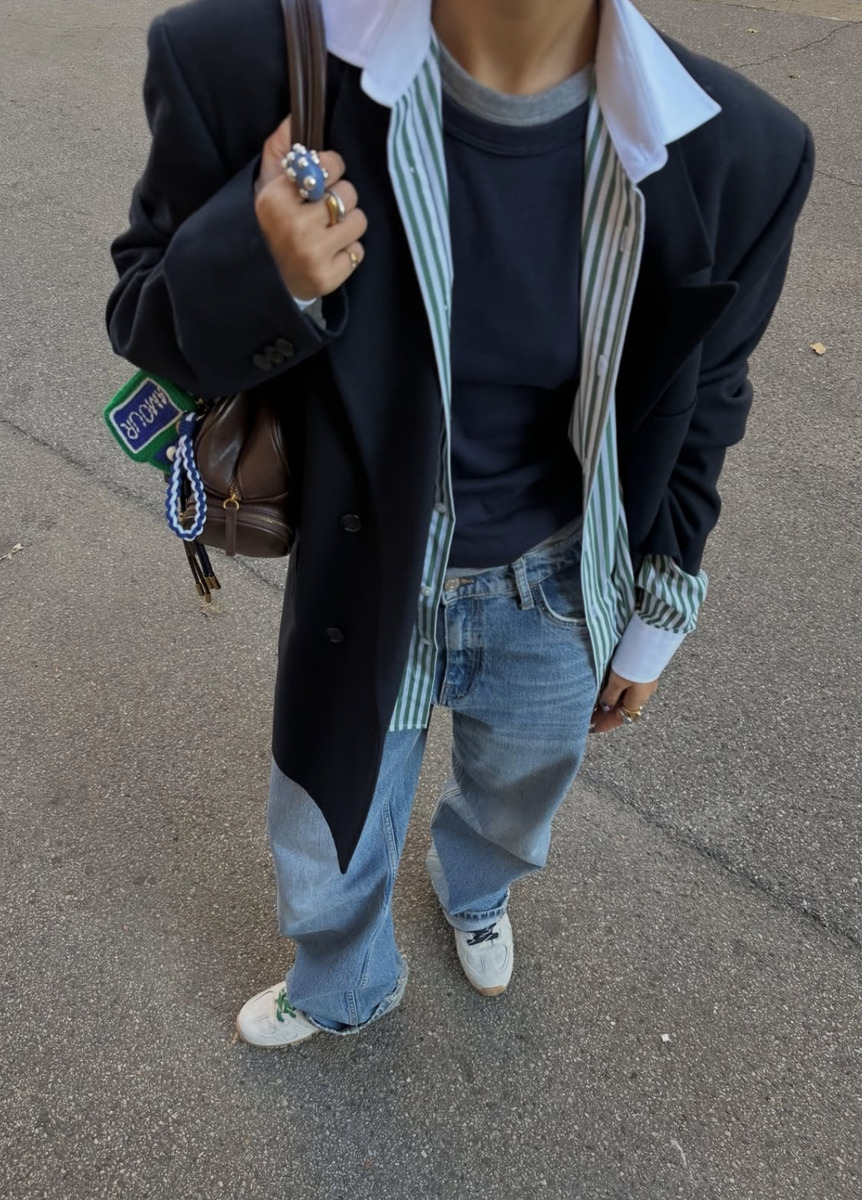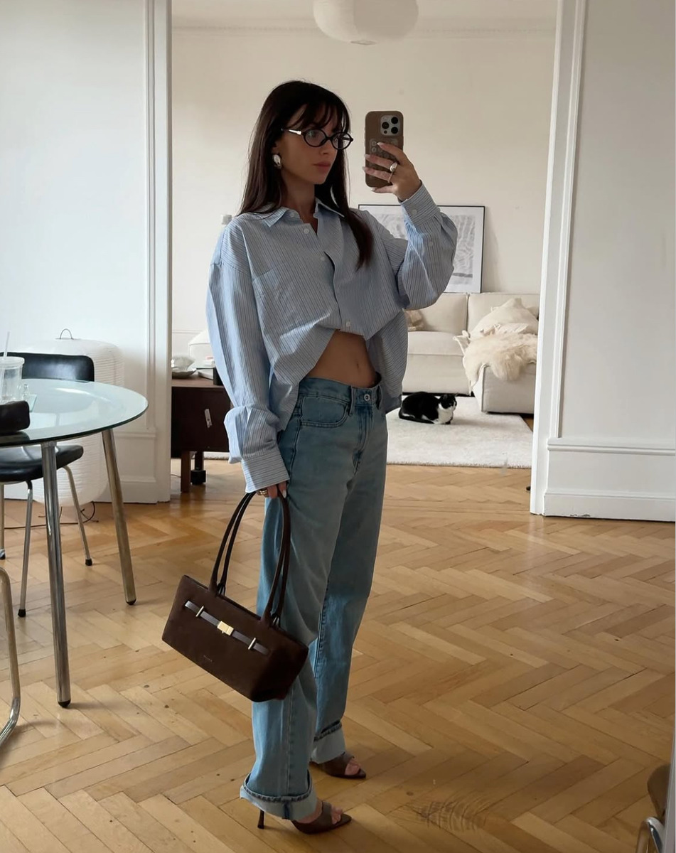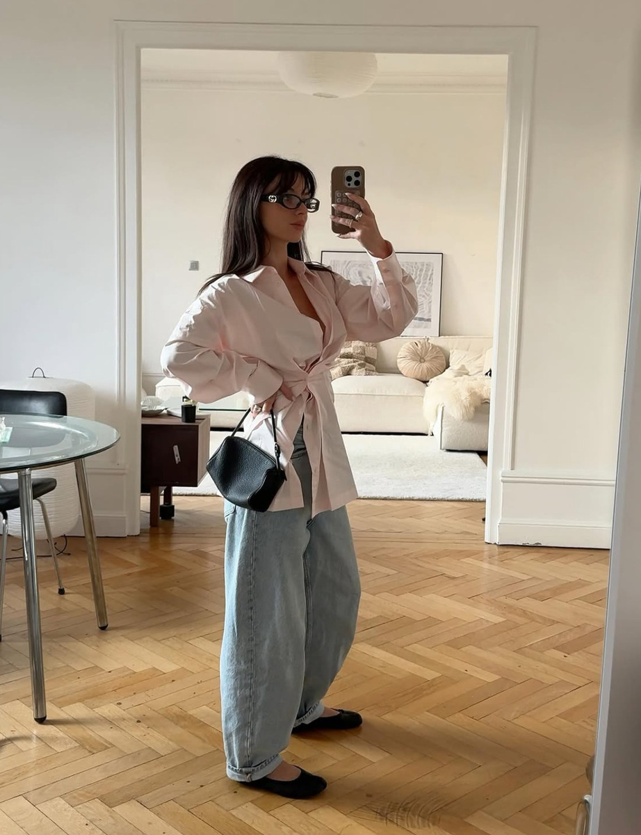 ‘데님 잘 알’들은 벌써 밑단을 한 단 접어 입기 시작했어요. 가볍게 말아 올리기만 해도 평소 입던 데님을 한층 산뜻한 무드로 연출할 수 있거든요. 특히 통이 넓고 밑단으로 갈수록 좁아지는 배럴 레그 진이 슬슬 지루해졌다면 끝을 가볍게 롤업해 입어보세요. 봄기운 가득한 셔츠와 잘 어울리고, 플랫 슈즈나 납작한 스니커즈로 마무리하면 쉽죠.