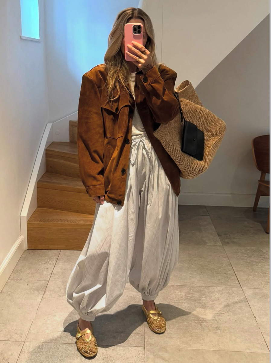 봄버 재킷을 좀 더 포멀하게 입어보는 건 어때요? 리넨이나 코튼 소재의 봄버 재킷은 클래식한 아이템과 매치했을 때 잘 어울리죠. 와이드 슬랙스와 코디하면 가벼우면서도 격식 있는 미팅 룩을 완성할 수 있어요. 여기에 각 잡힌 빅 백을 더해 완성하는 것 잊지 마세요.