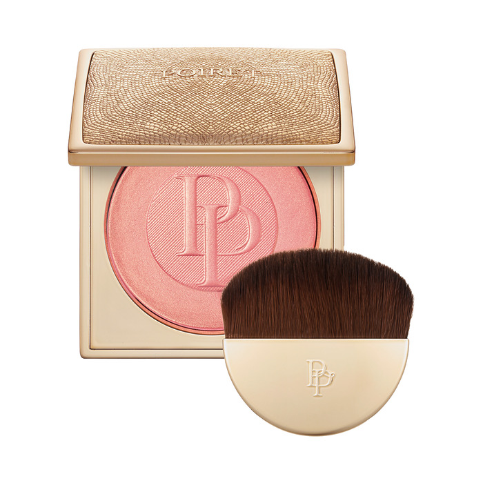 CHEEKS 베이지 브라운 컬러의 블러셔를 볼 중앙에서 시작해 광대 방향으로 넓게 블렌딩한다. 광대부터 볼 중앙까지 연결하듯 파우더 타입 하이라이터를 얹고, 같은 위치에 스틱 밤 타입 하이라이터를 한 번 더 레이어링한다.