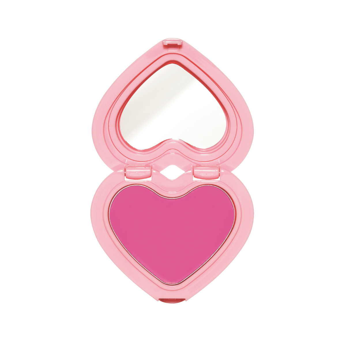 CHEEKS 크림 타입 핑크 블러셔를 스펀지에 묻히고 손등에서 양을 조절한 뒤, 눈 밑부터 볼 전체에 고르게 얹는다. 볼 중앙에 한 번 더 바르고, 코는 끝보다 살짝 위를 스치듯, 턱은 중앙에서 아래쪽으로 가볍게 터치한다.