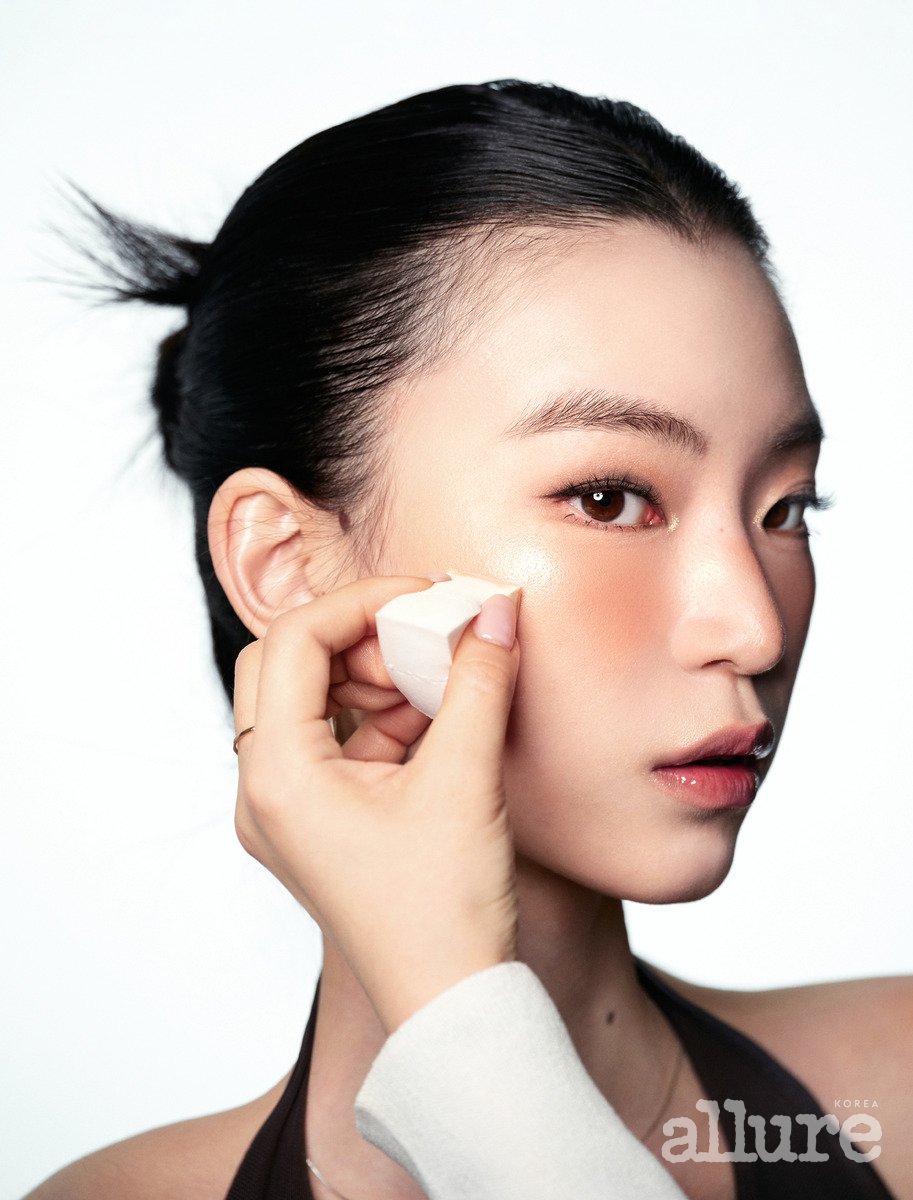 ARTIST’S SKILL 아이돌 빔 메이크업의 핵심은 양 조절이에요. 중간 사이즈 브러시로 피부 표면에 얇은 광을 입힌 뒤, 강조하고 싶은 부위에만 작은 브러시로 한 번 더 얹어주세요. 마지막 단계에서는 스펀지를 활용해 광택감을 쌓으면 반짝임이 배가됩니다. 이때 힘을 줘서 문지르면 스펀지가 광을 흡수하거 나 베이스가 벗겨질 수 있으니 톡톡 두드리듯 가볍게 마무리하세요.