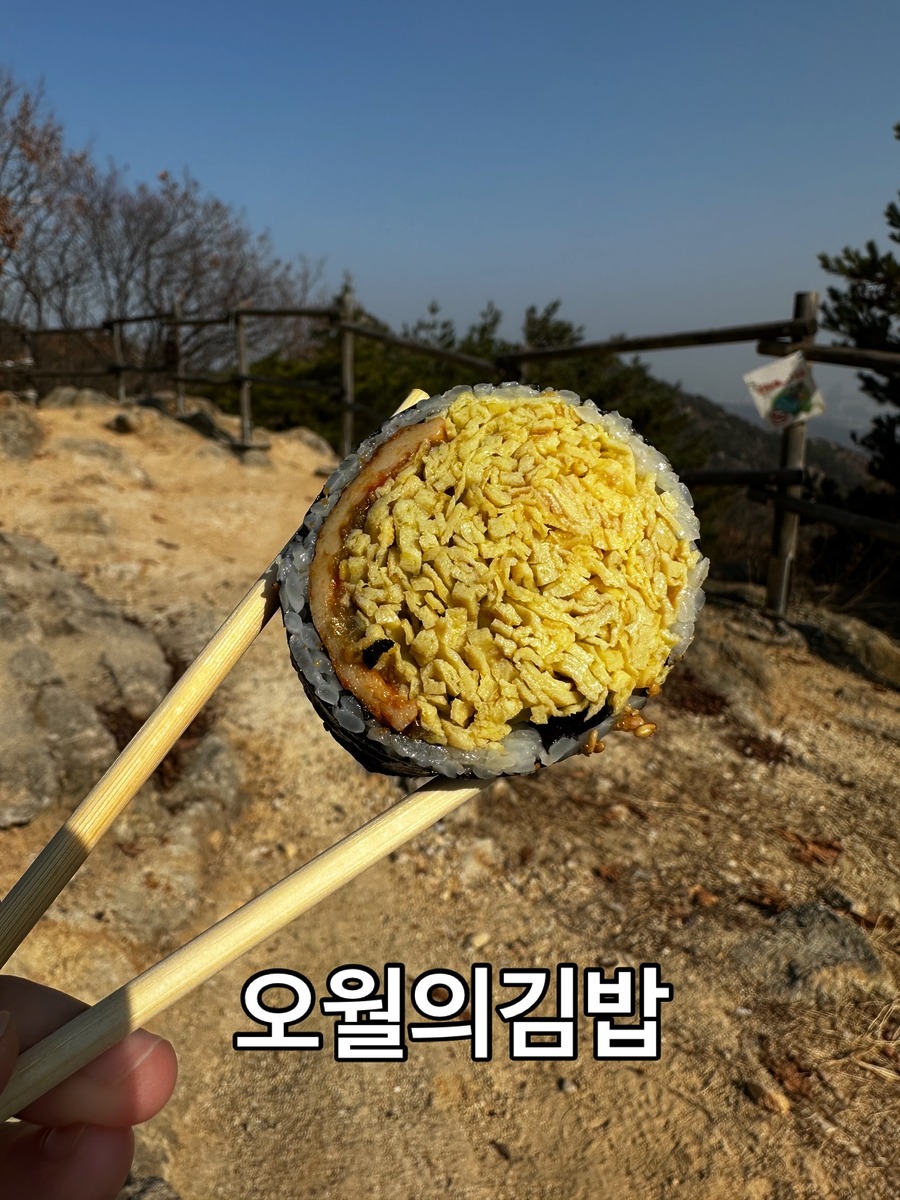 등산할 때 가져가기 좋은 메뉴 중 하나는 컵라면, 다른 하나는 김밥이죠. 때문에 관악산 주변의 김밥집들이 최근 주목 받고 있는데요, 그 중 한 곳이 고추장 김밥과 계란말이 김밥으로 유명한 ‘이레 김밥’입니다. 고추장 김밥은 밥을 고추장에 비빈 뒤 김에 말아 매콤한 맛을 좋아하는 이들의 취향을 제대로 저격합니다. 계란말이 김밥은 일반 김밥위에 계란으로 얇게 한 번 더 감싸 슴슴하면서도 고소한 뒷맛을 지녔어요. 관악산 인기에 따라 이레 김밥 인기도 같이 올라가고 있으니 예약 필수!