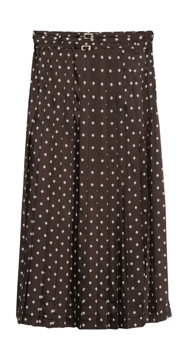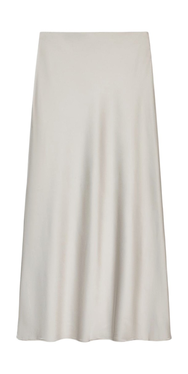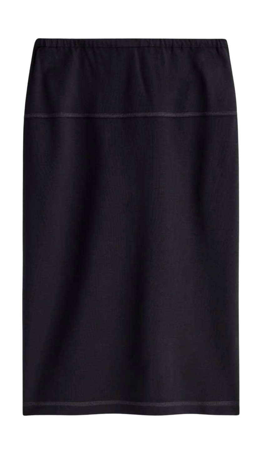 무채색 미디 스커트는 생각보다 훨씬 유용한 아이템입니다. 니트나 카디건을 매치하는 것만으로도 우아하고 차분한 룩이 완성되거든요. 포인트는 로우 웨이스트 디자인을 선택해 허리가 살짝 드러나게 연출하는 것! 이렇게 하면 답답함 없이 한층 세련된 인상을 줄 수 있어요. 슈즈는 플랫슈즈로 가볍게 연출하고 니삭스를 더하면 단정함 속에 걸리시한 포인트가 살아납니다.