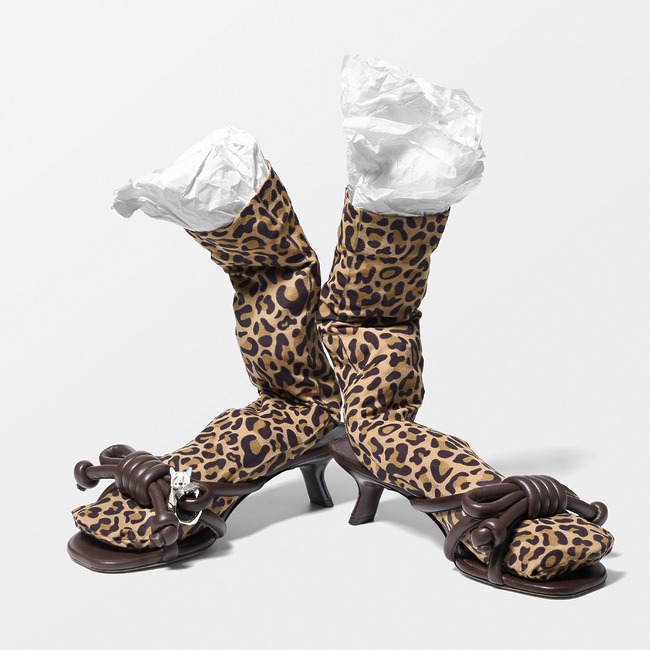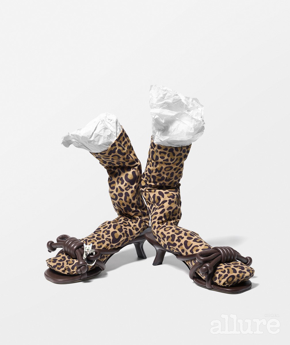 램스킨 소재의 매듭 디테일 샌들은 1백60만원, 매듭에 장식한 고양이 모티프 참은 가격미정 로에베(Loewe). 스타킹은 에디터 소장품.