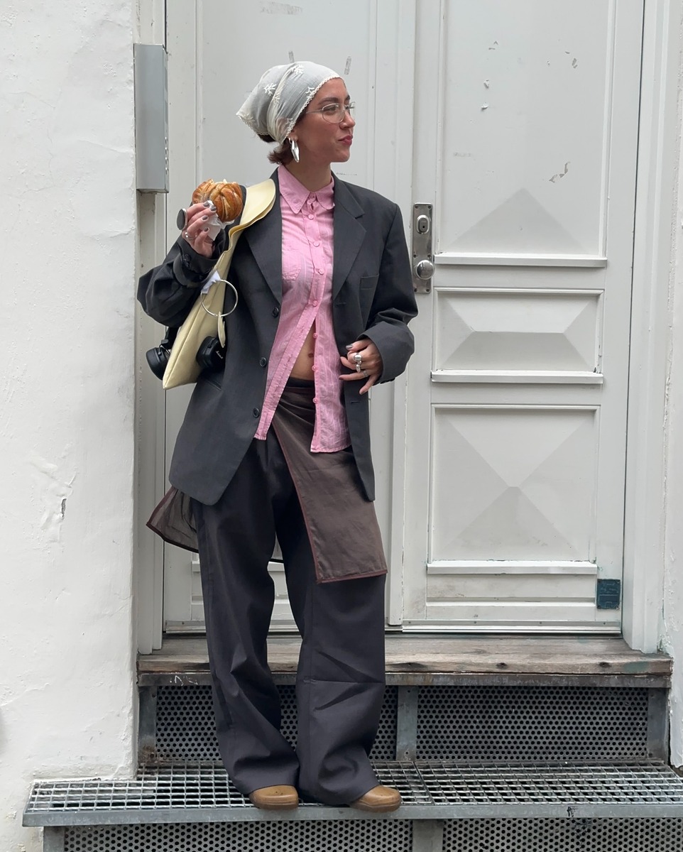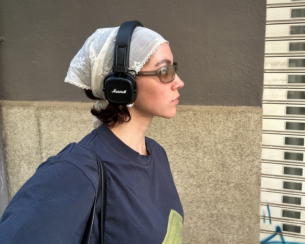 두건은 의외로 데일리 룩에도 이질감 없이 어우러집니다. 화이트 컬러 레이스 스카프를 깔끔하게 묶어 연출하면 평범한 룩에도 부담스럽지 않은 포인트가 생기죠. 두건 위로 헤드폰을 써 트렌디한 무드를 더하는 것도 좋은 방법입니다.