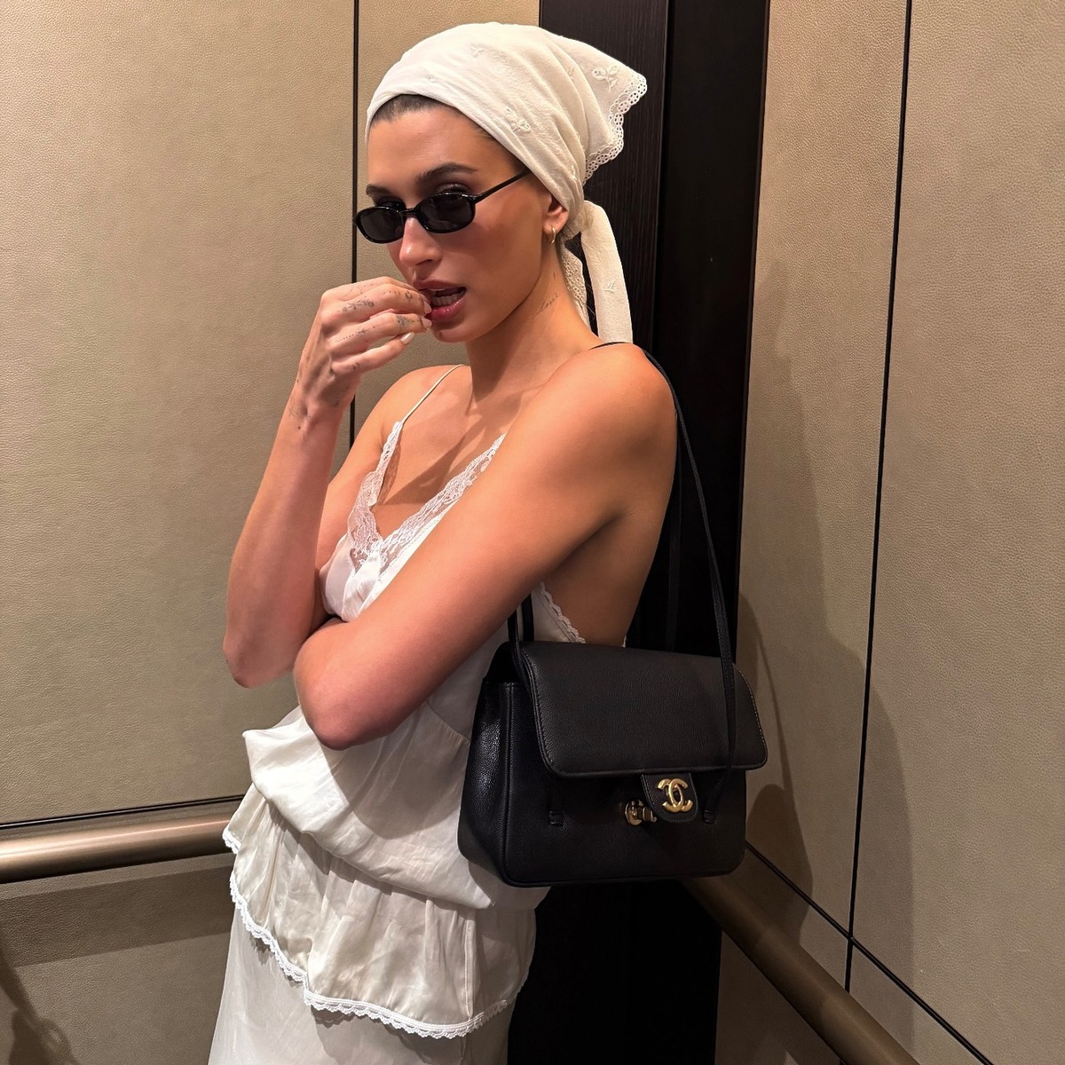 발 빠른 헐리웃 셀럽들은 이미 오래전부터 두건을 패션 아이템으로 활용하고 있습니다. 알렉사 청은 미니멀한 블랙 드레스에 같은 컬러의 스카프를 둘러 시크함에 내추럴함을 한 스푼 섞었죠. 헤일리 비버는 레이스 톱과 스카프로 내추럴한 매력을 뽐냈고요. 두건에 처음 도전한다면 이들처럼 스카프와 착장의 컬러를 통일해 부담 없이 즐겨 보세요.