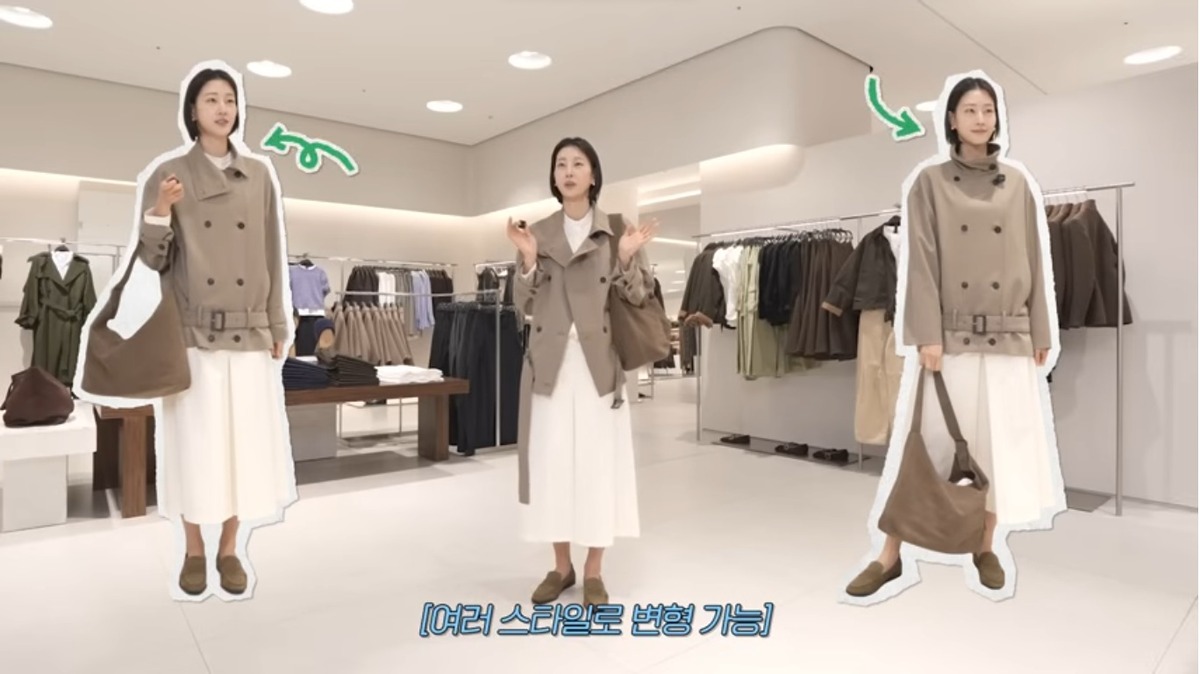 긴 트렌치코트는 언제나 멋스럽지만, 올 봄엔 벨트 아래에서 툭 자른 듯한 숏 트렌치가 대세. 이현이는 하이넥 칼라의 벨트 플루이드 재킷을 선택했습니다. 단추와 벨트를 얼마나 채우는지에 따라 분위기가 바뀌는 가성비 아이템이죠.