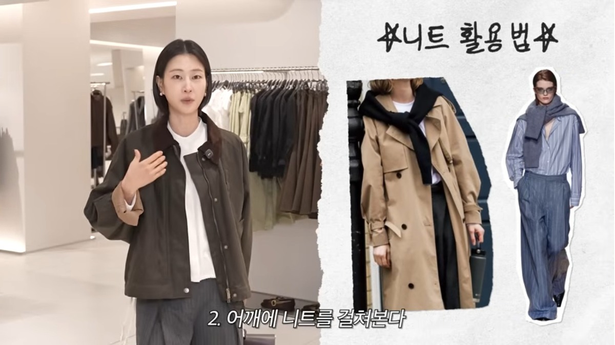 이번 시즌 옷잘알들의 필수템 워크웨어. 이현이는 뮤직 페스티벌에 간 셀럽들이 애용하던 왁스 재킷을 골랐는데요. 하의를 포멀하게 입으면 회사는 물론 아이들 학교에 가도 손색 없죠. 총회가 끝나고 바로 성수동으로 갈 수 있는 트민맘 룩이라고요.