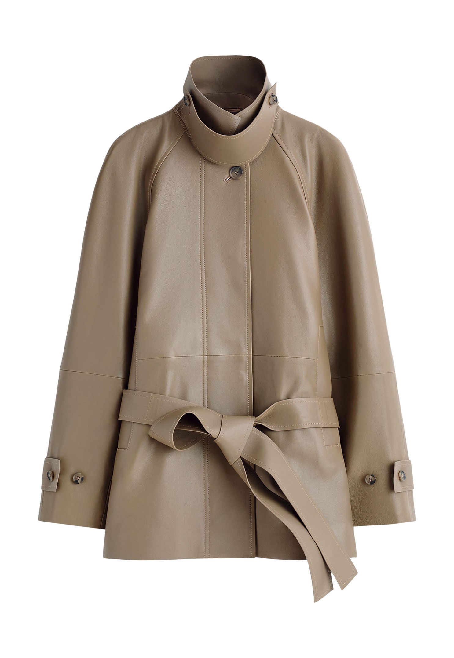 COS퍼널넥 레더 쇼트 트렌치 재킷
