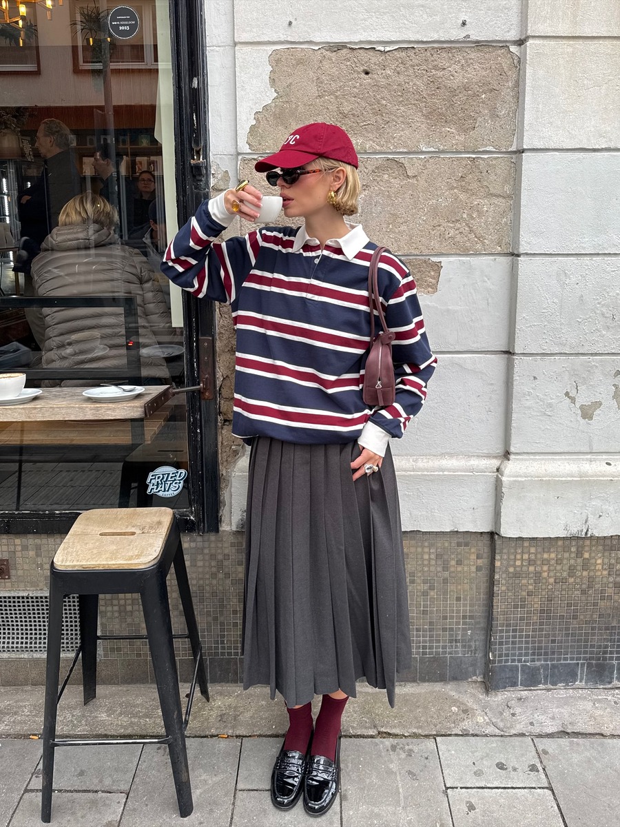 플리츠스커트와 컬러풀한 스트라이프가 돋보이는 카라 티셔츠, 볼캡 스타일링에 페니 로퍼를 신어보세요. 이때 양말 깔 맞춤도 잊지 말고요! 스트라이프 패턴 티셔츠, 롤업 데님에 가죽 재킷을 입은 룩에도 마무리는 무조건 블랙 페니 로퍼입니다. 캐주얼한 스타일에 약간의 포멀함을 더해주는 식이죠.
