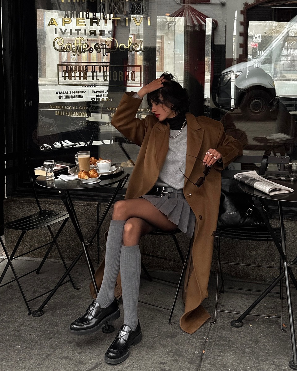페미닌하면서도 포멀한 룩을 즐겨 입는다면 클래식한 멋을 가진 투톤 로퍼가 정답입니다. 특히 블랙 & 화이트 컬러 조합은 두말하면 입 아프죠! 블랙의 풍성한 롱스커트로 룩의 전체적인 무게 중심을 잡은 뒤 상의는 레드&블루처럼 원색의 컬러로 포인트를 주세요. 날씨가 좋아지니 노랑이나 핑크도 좋겠어요! 양말 컬러는 꼭 코디된 옷과 맞추는 센스를 발휘해 보세요.