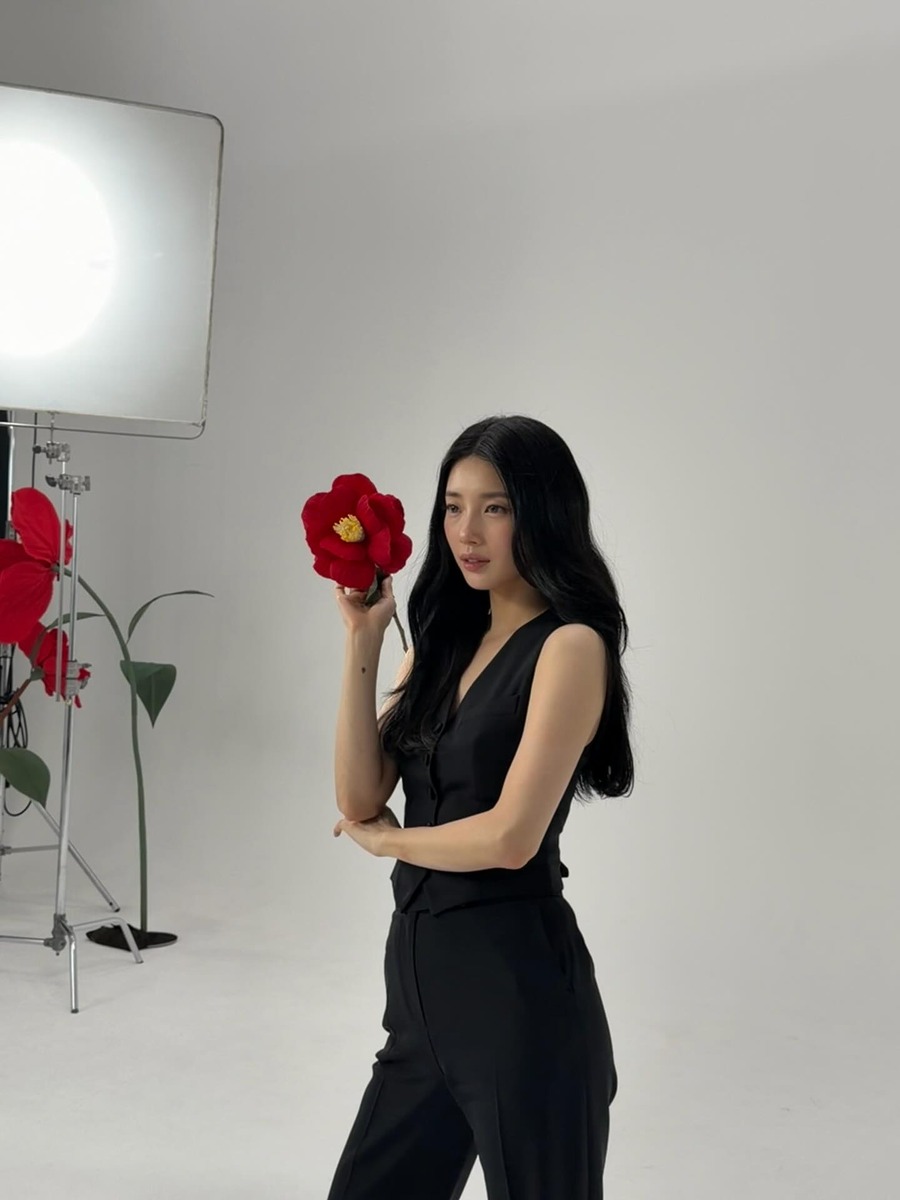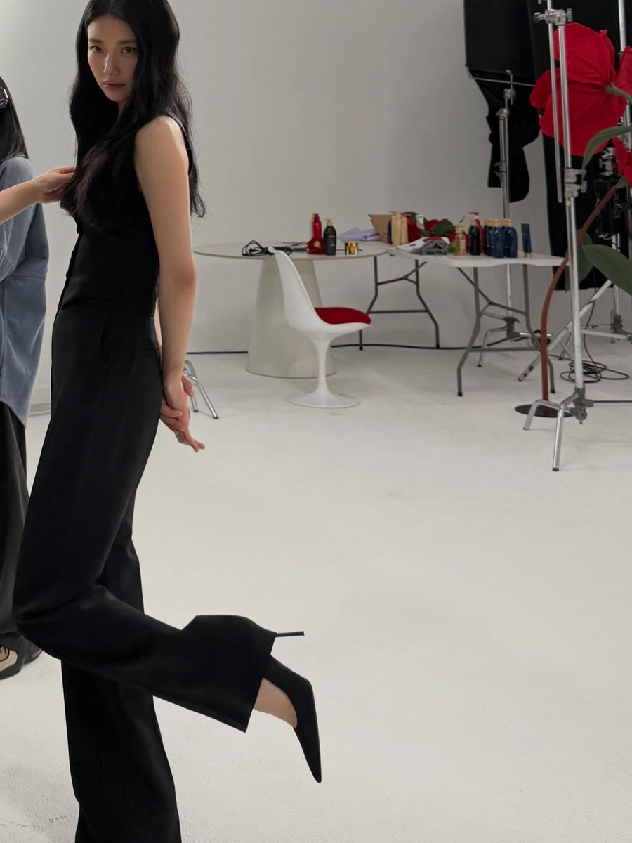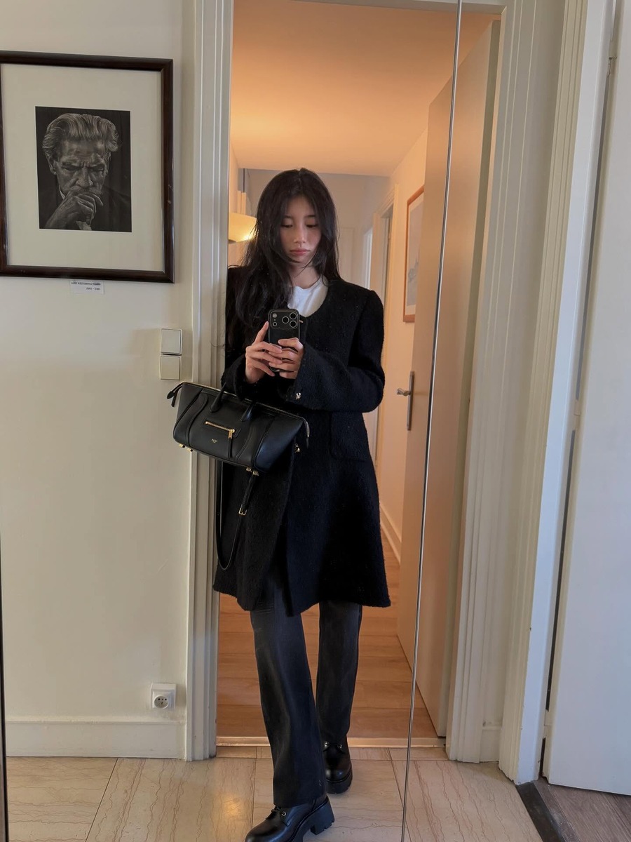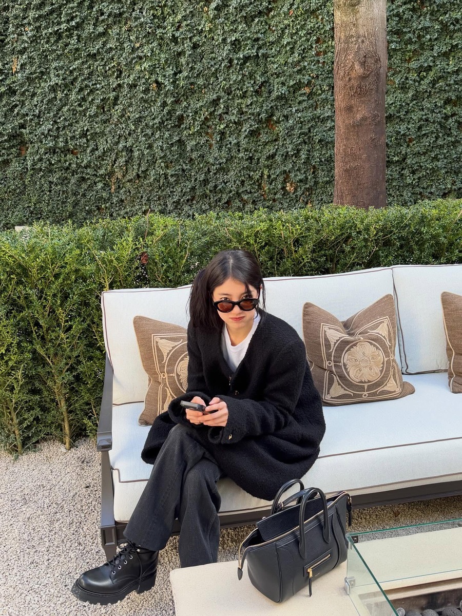국민 첫사랑의 퍼컬은 핑크인 줄 알았는데, 아니었습니다. 얼마 전 파리 컬렉션에 등장한 올블랙 수지 이야기인데요. 히메컷으로 신비로움을 더한 긴 웨이브 헤어, 갑옷처럼 채워 입은 벨티드 레더 재킷, 그리고 다리가 어마무시하게 길어 보이는 와이드 팬츠로 포스를 발산했죠.