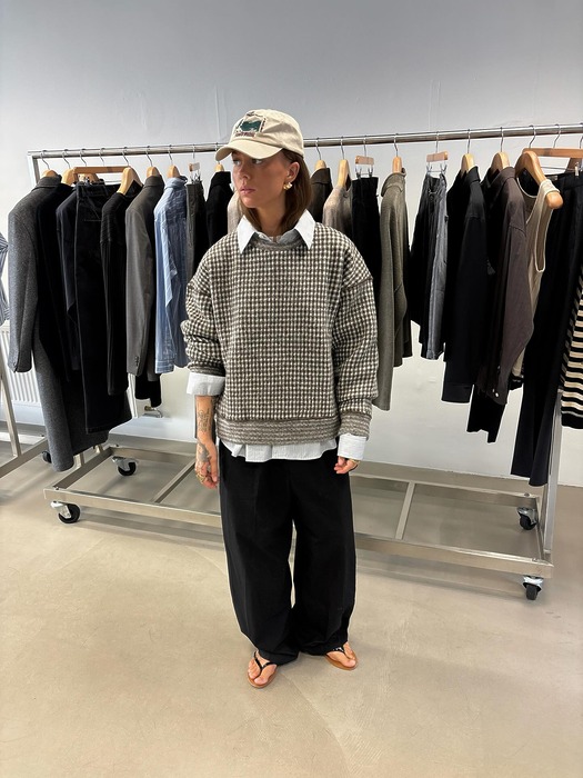 셔츠 한 장으로 캐주얼의 대명사 스웨트 셔츠가 단숨에 포멀한 비즈니스 룩으로 변신한다는 게 이 조합의 가장 큰 매력 포인트입니다. 카디건의 단정함이 지루하게 느껴질 때 편안하고 캐주얼한 무드의 스웨트 셔츠가 훌륭한 대안이 되어주죠. 키치한 그래픽이 더해진 스웨트 셔츠를 선택해 룩에 약간의 위트를 더하는 것도 눈여겨볼 만한 방법입니다.