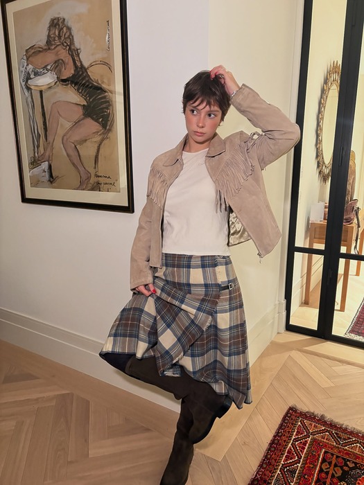 봄 무드를 좀 더 발랄하게 끌어올리고 싶다면 패턴을 더하는 것도 좋은 방법입니다. 스웨이드 재킷에 도트 무늬 블라우스나 체크 스커트를 함께 매치하는 거예요. 두 가지 패턴이 들어가도 산만해 보이지 않는 건, 스웨이드 재킷이 전체 스타일링의 중심을 잡아주기 때문이죠. 레더가 덕분에 패턴이 오히려 더 경쾌하고 선명하게 살아납니다. 패턴 도전이 망설여졌다면, 스웨이드 재킷과 함께 쉽게 소화해 보세요.
