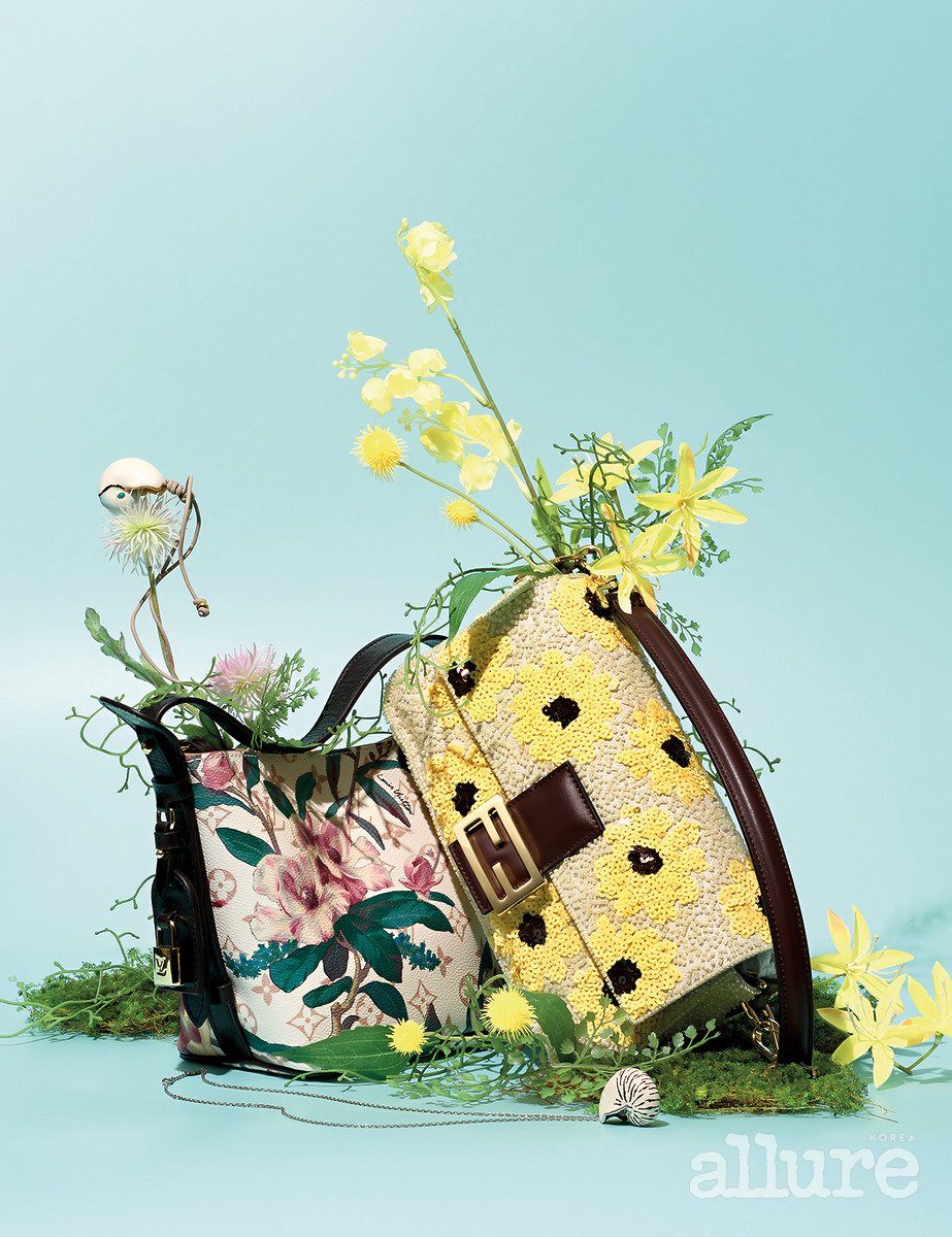 (왼쪽부터) 코팅 캔버스에 플로럴 모티프를 장식한 ‘올 인 BB’ 백은 3백98만원 루이 비통(Louis Vuitton).