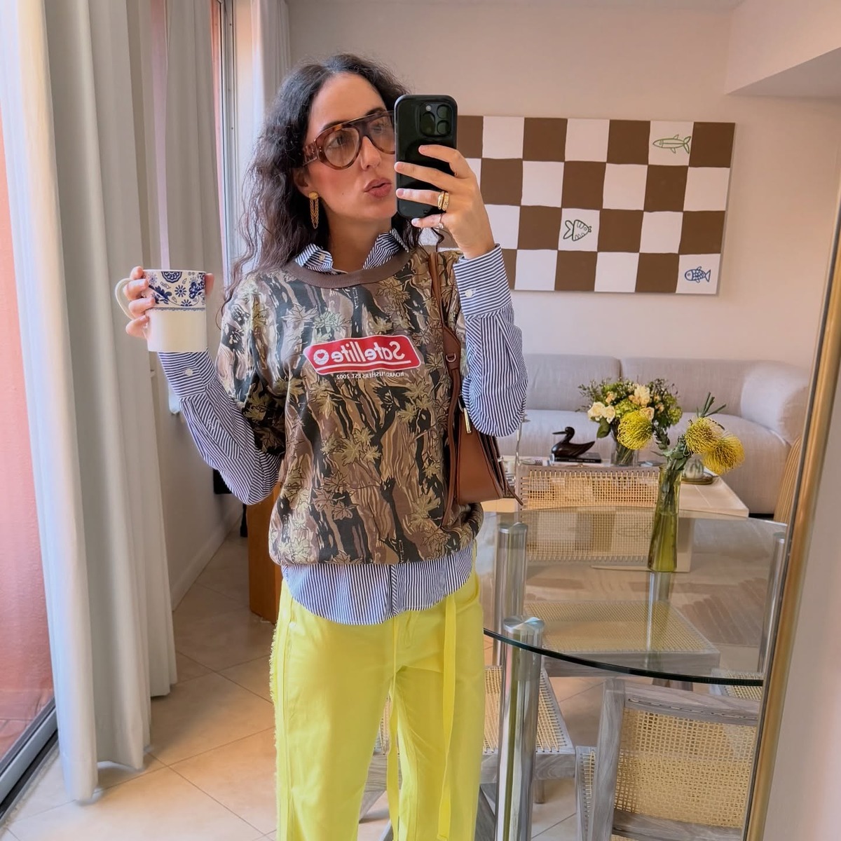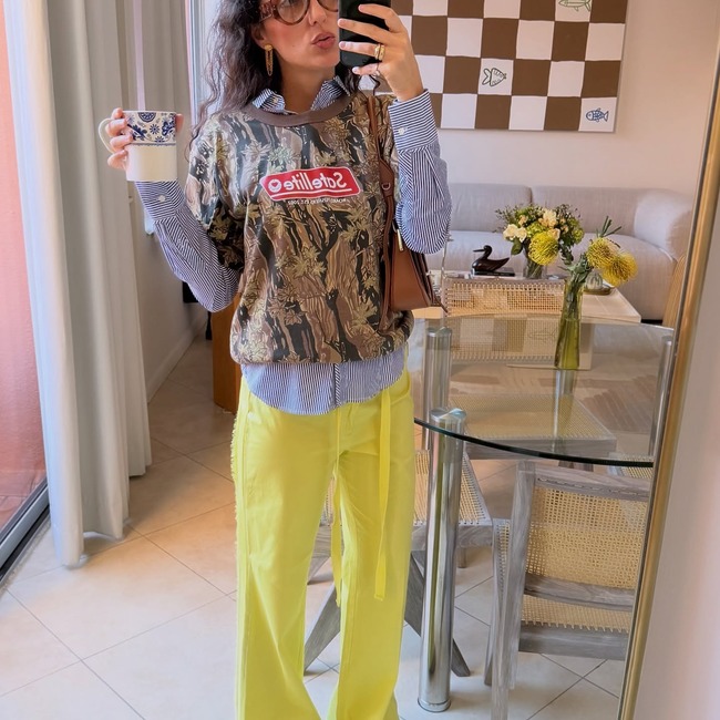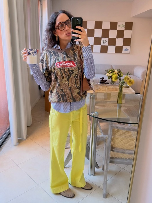 카모플라주 팬츠는 의외로 활용도가 높은 아이템입니다. 홀터넥 톱은 물론, 키치한 티셔츠와도 궁합이 좋거든요. 위트 넘치는 그래픽이 더해진 티셔츠나 비비드한 컬러의 스트라이프 티셔츠에 카모 팬츠를 매치하면 편안하면서도 쿨한 룩이 완성됩니다. 곧 본격적인 여름이 시작되면 버뮤다 실루엣의 카모 팬츠를 선택해도 좋아요. 차분한 무채색보다는 비비드 컬러의 가방이나 슈즈로 포인트까지 더하면 생동감을 더할 수 있을 거예요.