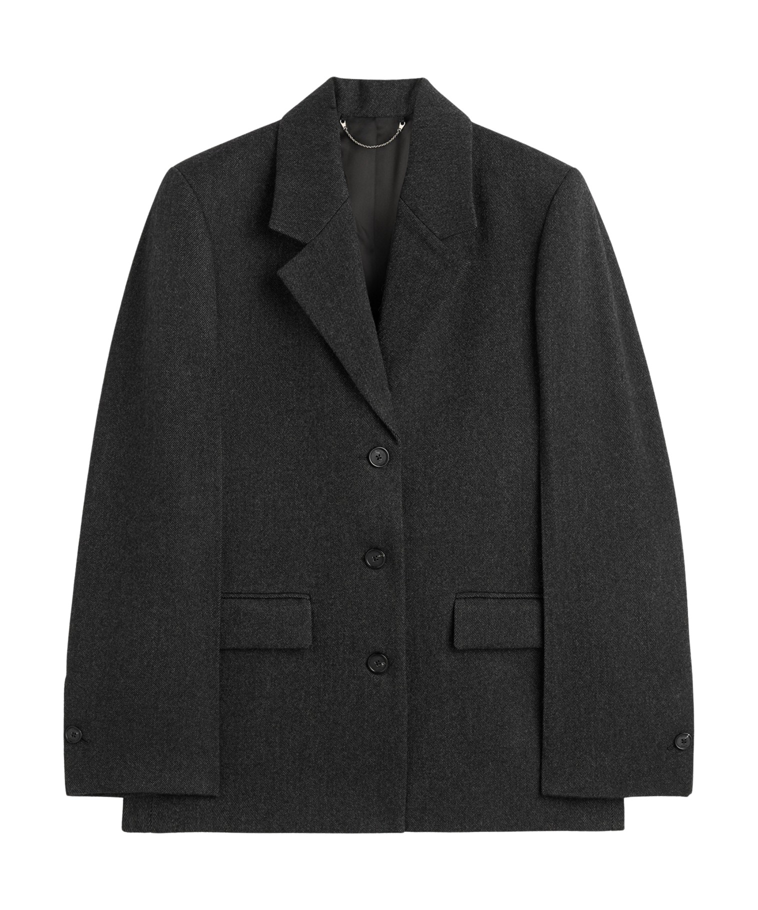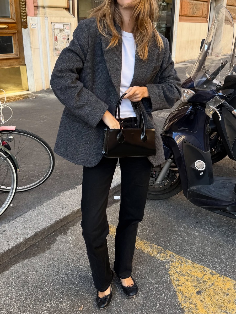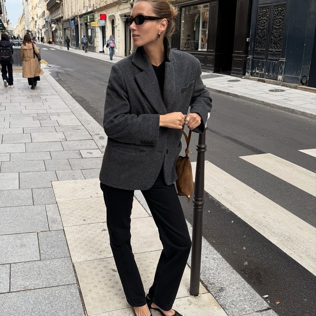 패피라면 진한 그레이 컬러의 울 블레이저는 필수죠. 흰 티셔츠에 블랙진, 그 위에 블레이저만 걸쳐도 심플한 데일리룩이 완성되니까요.